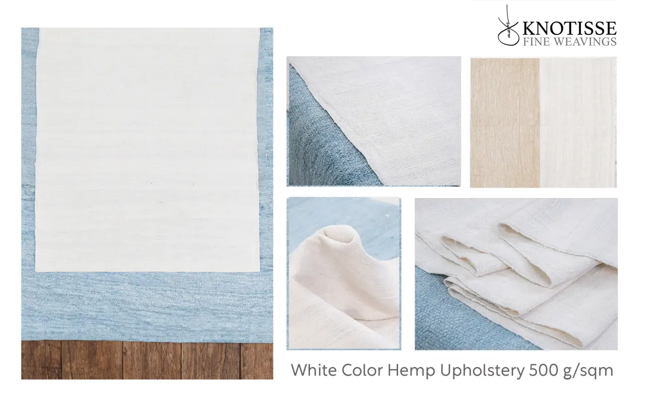 Choose nature’s palette: Let the creamy whisper of white hemp bathe your space in serene purity, or embrace the sunlit warmth of natural hemp, inviting the earth’s embrace into your décor. This 500 gsm thin fabric dances with light, adding a touch of ethereal beauty to any chair, bench, or ottoman.