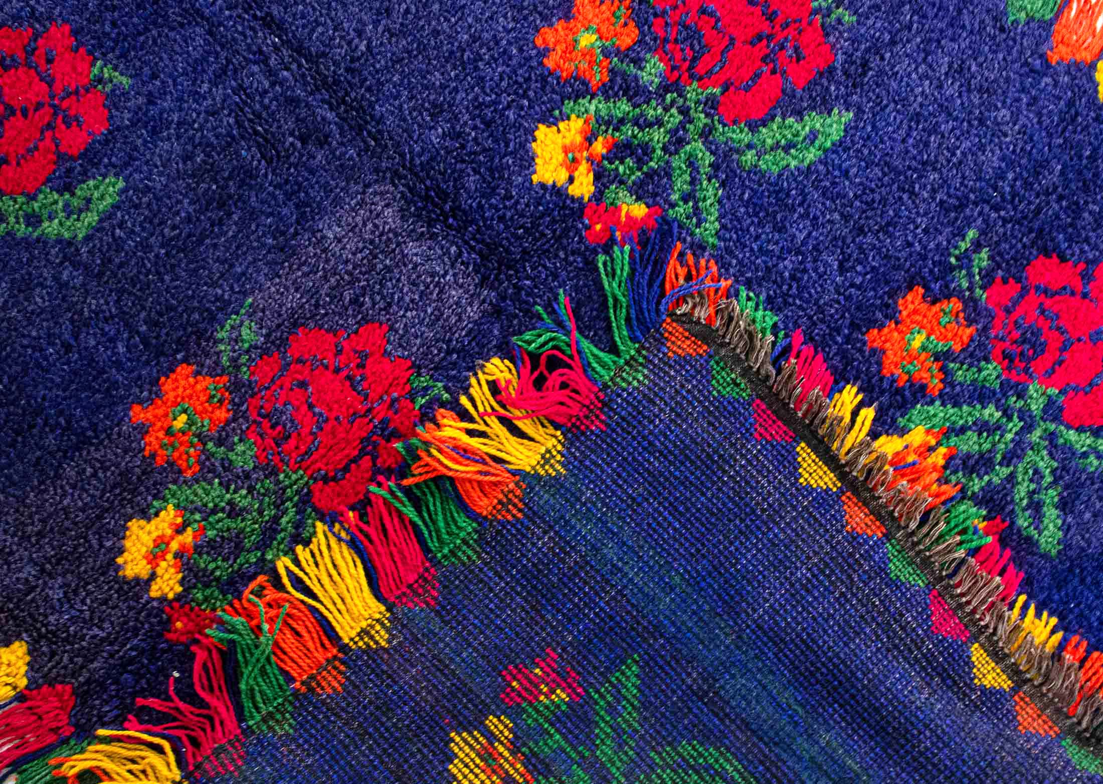 Unique Authentic Vintage Turkish Tulu Rugs | Blue Color Red Roses Green Yellow accents | 132×188 cm 4’4×6’2 ft 2.48 m2