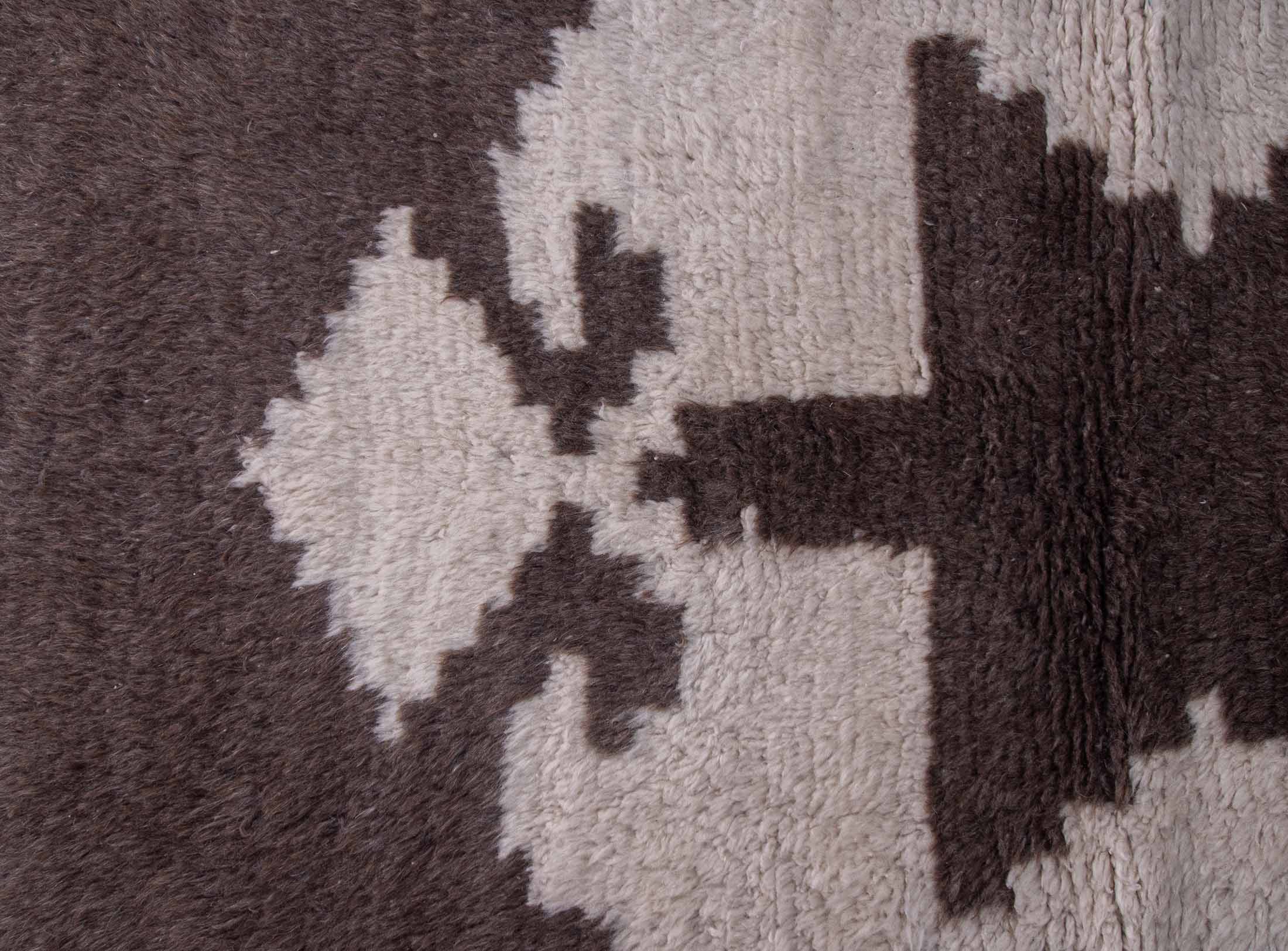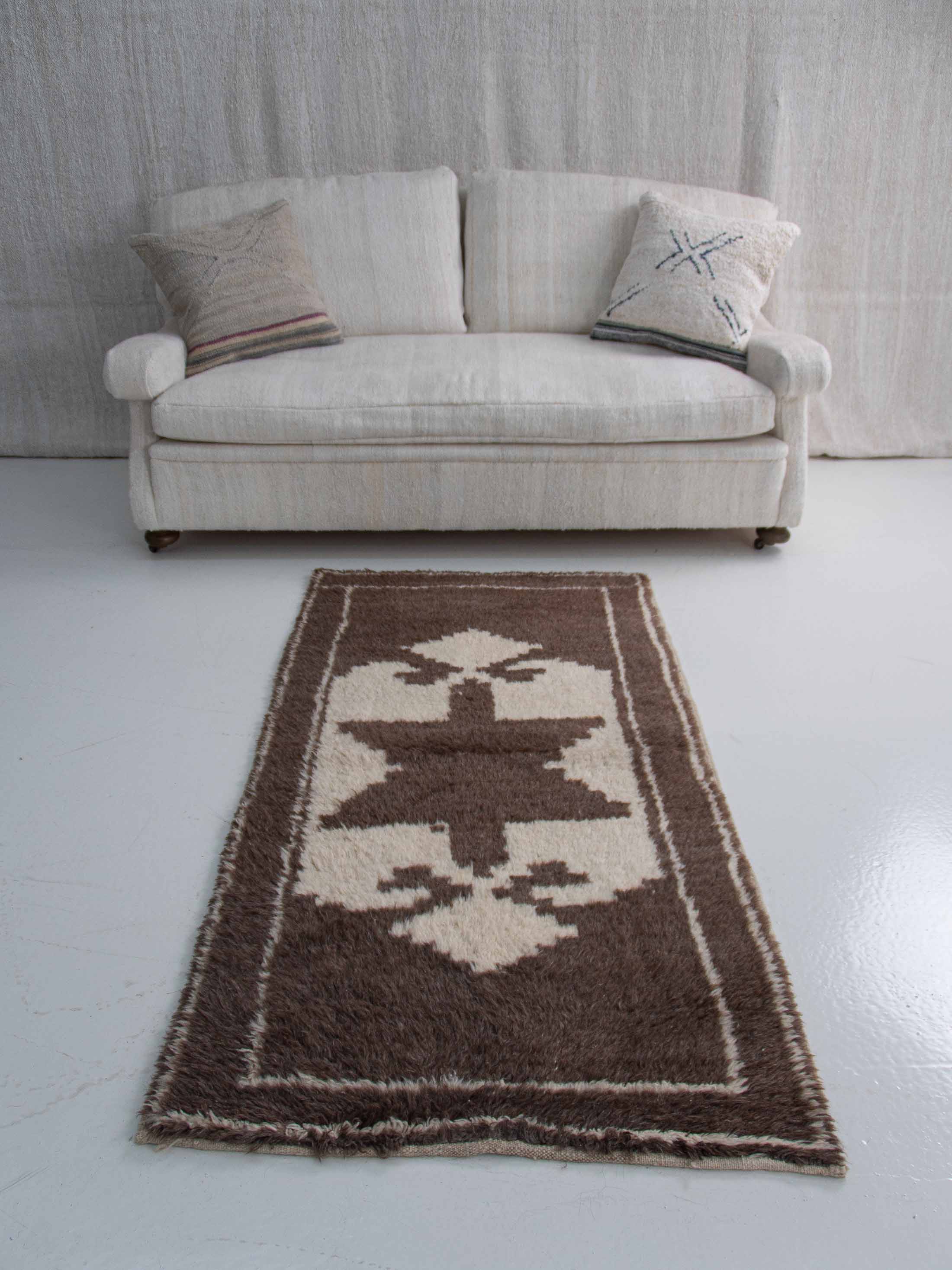 Handwoven from the finest wool, Authentic Vintage Turkish Tulu Rugs often incorporating the lustrous, curly hair of Angora goats, known as mohair, to create its distinctive long-piled, shaggy texture.