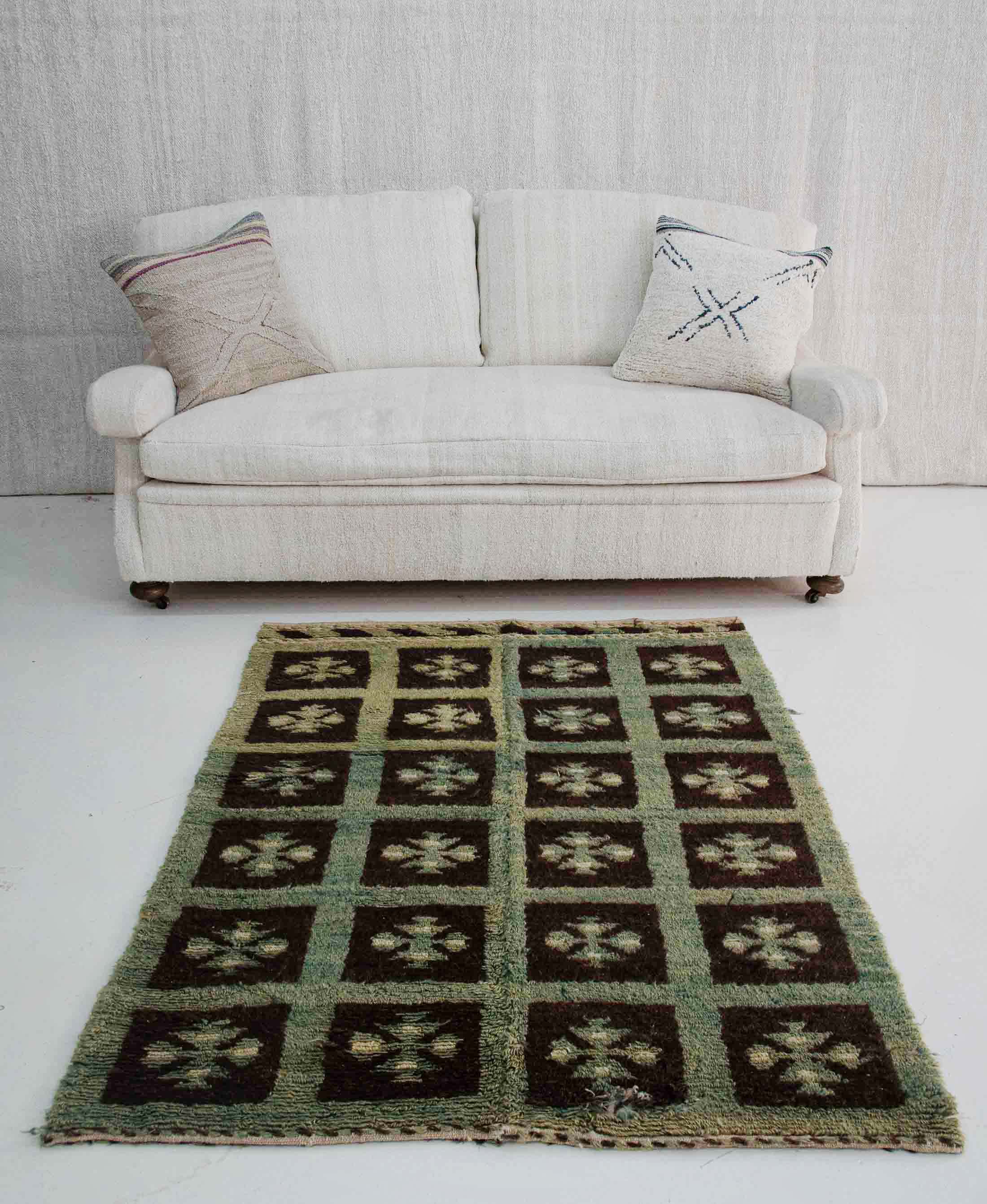 Discover the timeless elegance of our Authentic Vintage Turkish Tulu Rug, a unique square-framed brown carpet that exudes sophistication. Measuring 3.5×5.5 ft – 108×155 cm, this exquisite piece is a testament to traditional craftsmanship, perfect for interior designers seeking to create a statement with historic charm. Its compact size makes it an ideal choice for adding warmth and texture to any bespoke space.