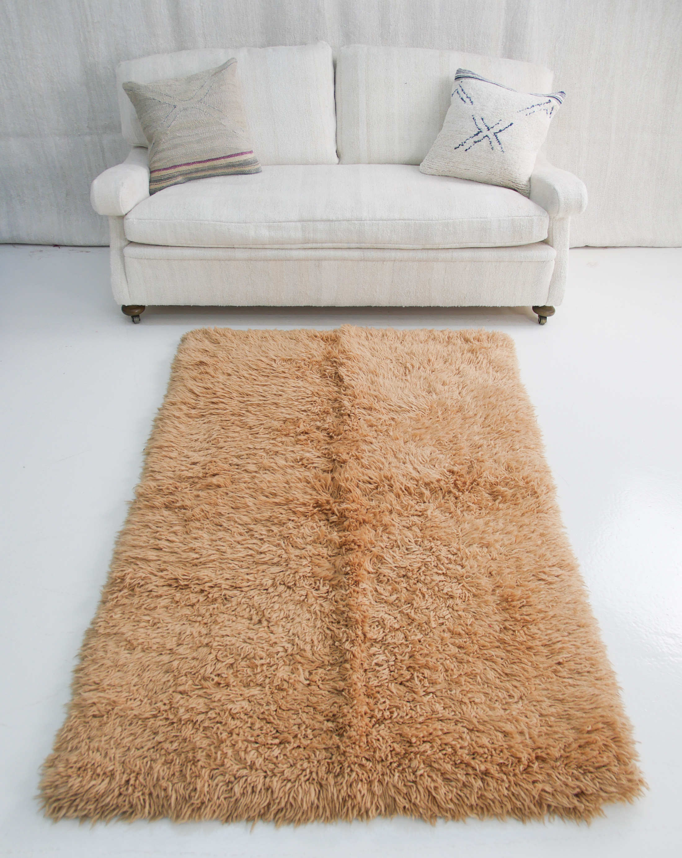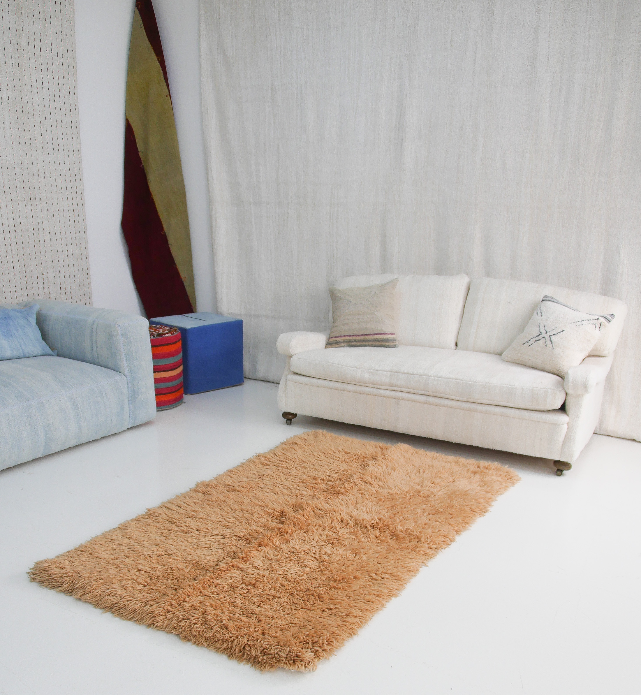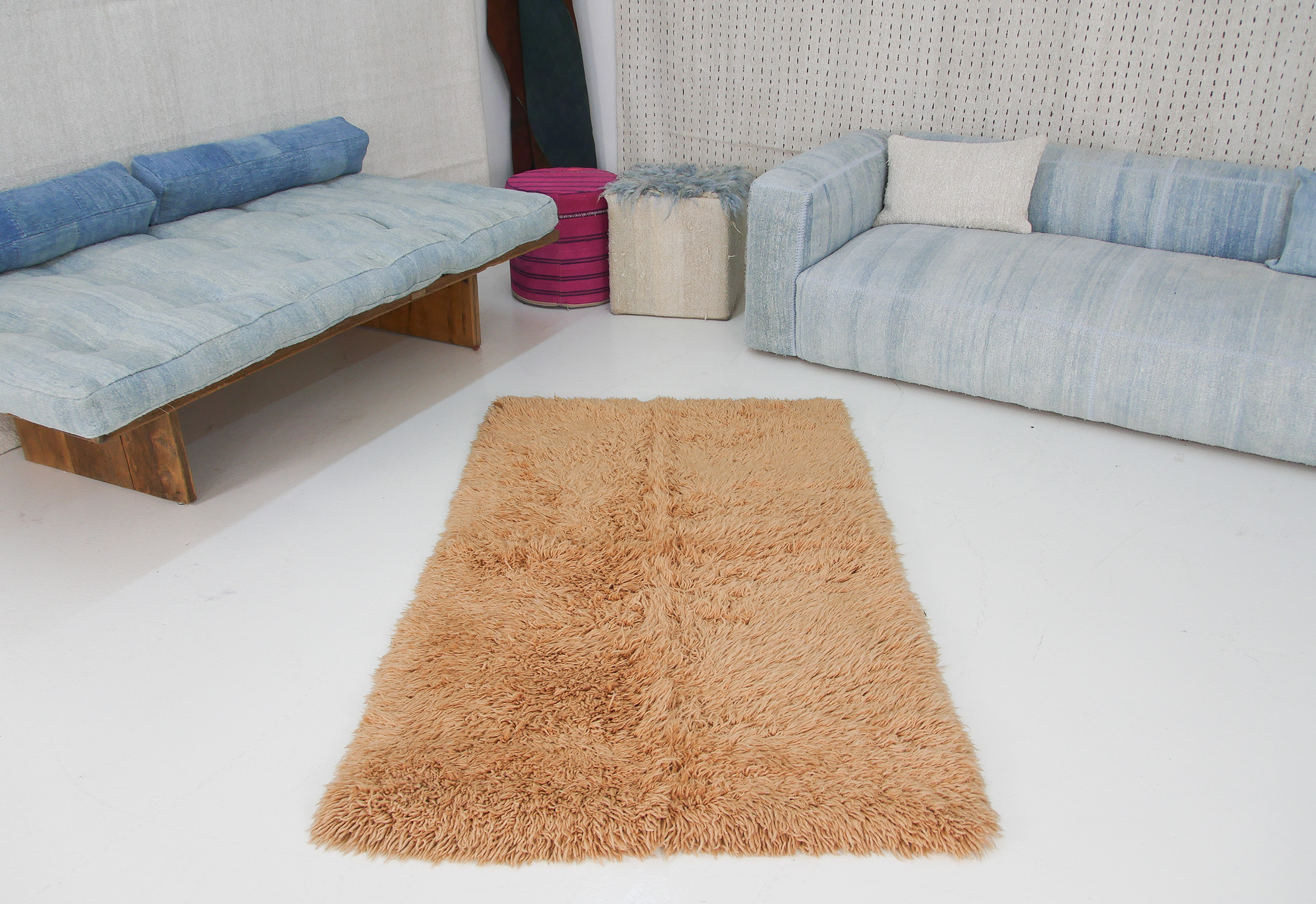 Handwoven from the finest wool, Authentic Vintage Turkish Tulu Rugs often incorporating the lustrous, curly hair of Angora goats, known as mohair, to create its distinctive long-piled, shaggy texture.