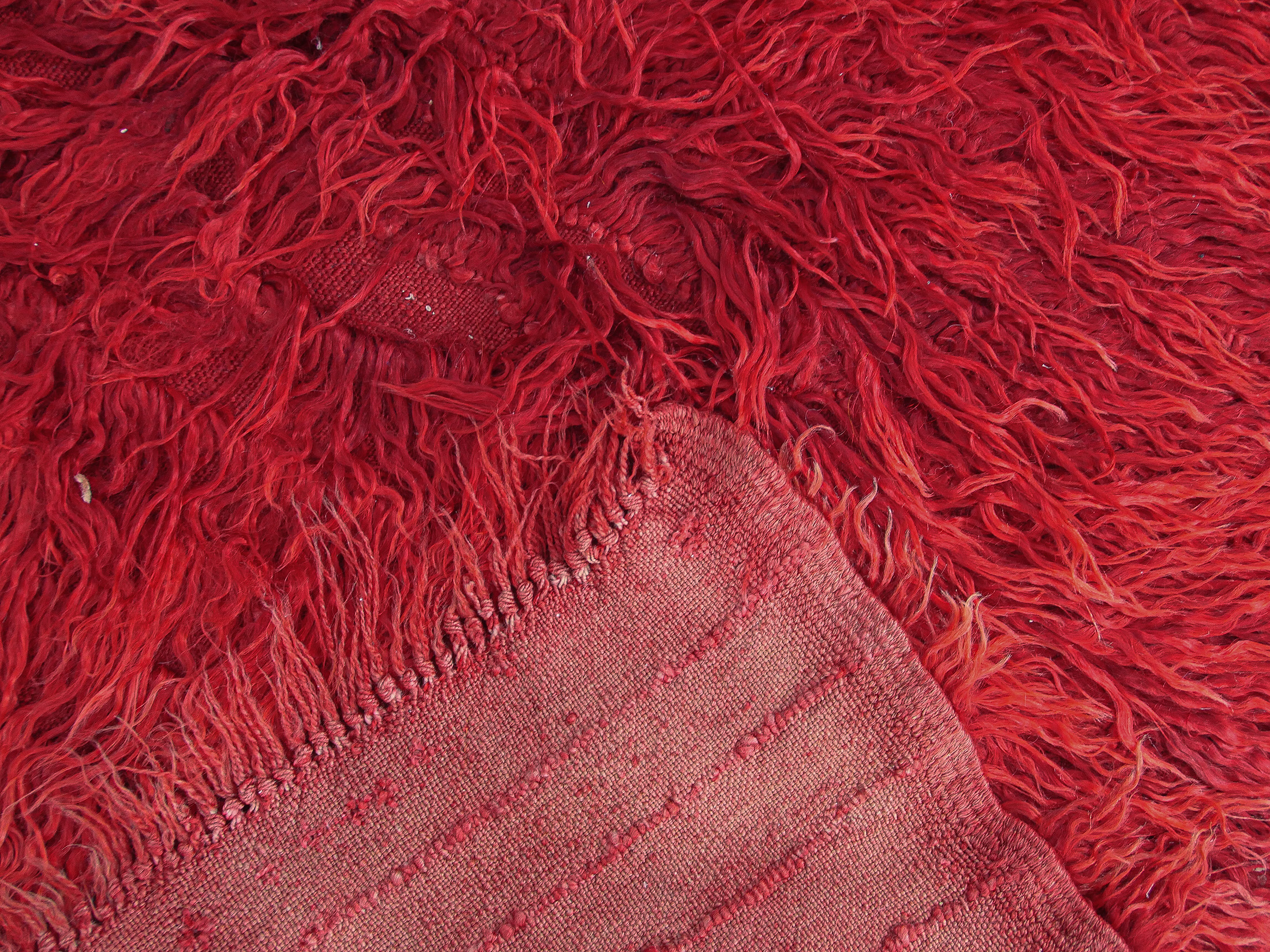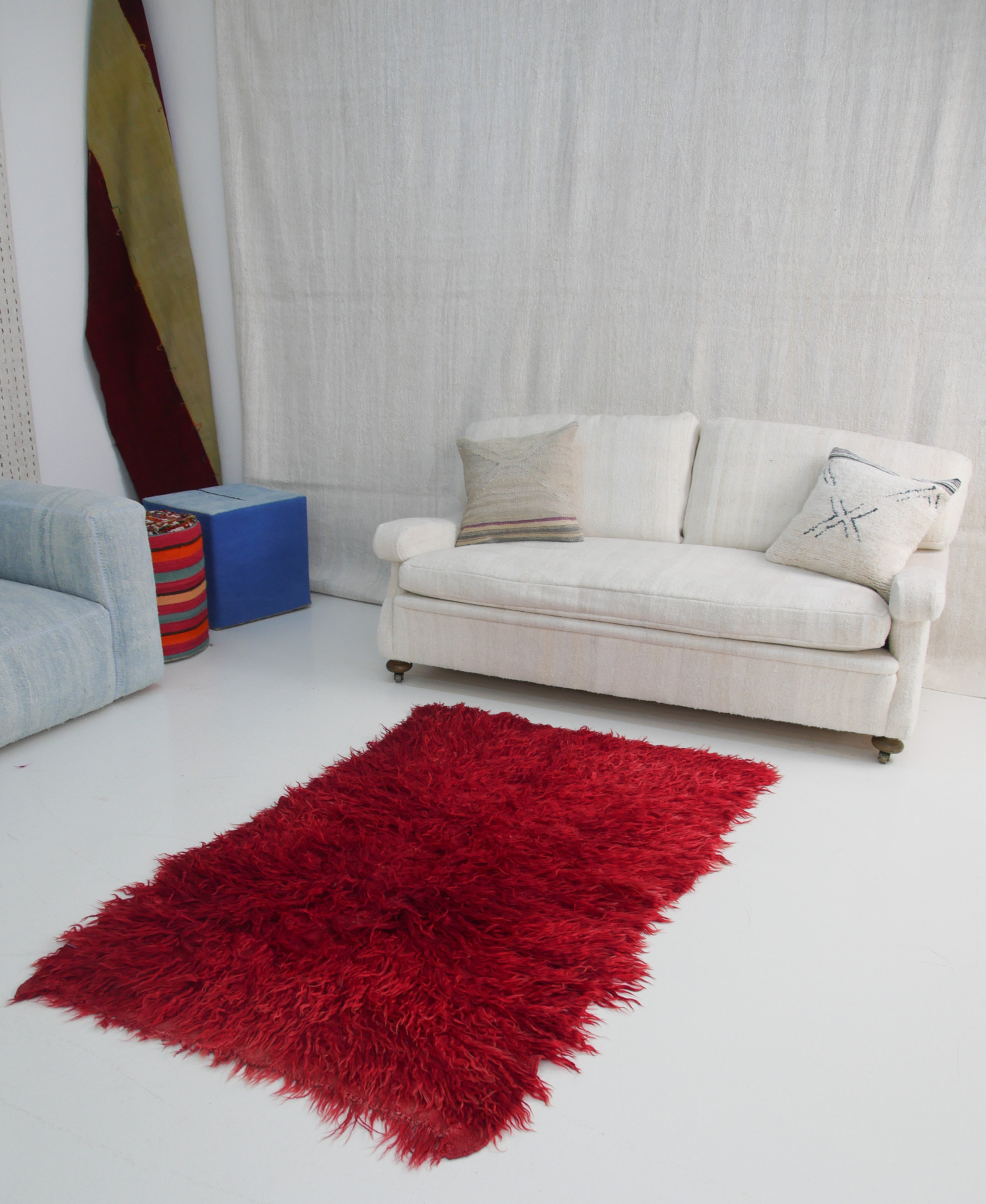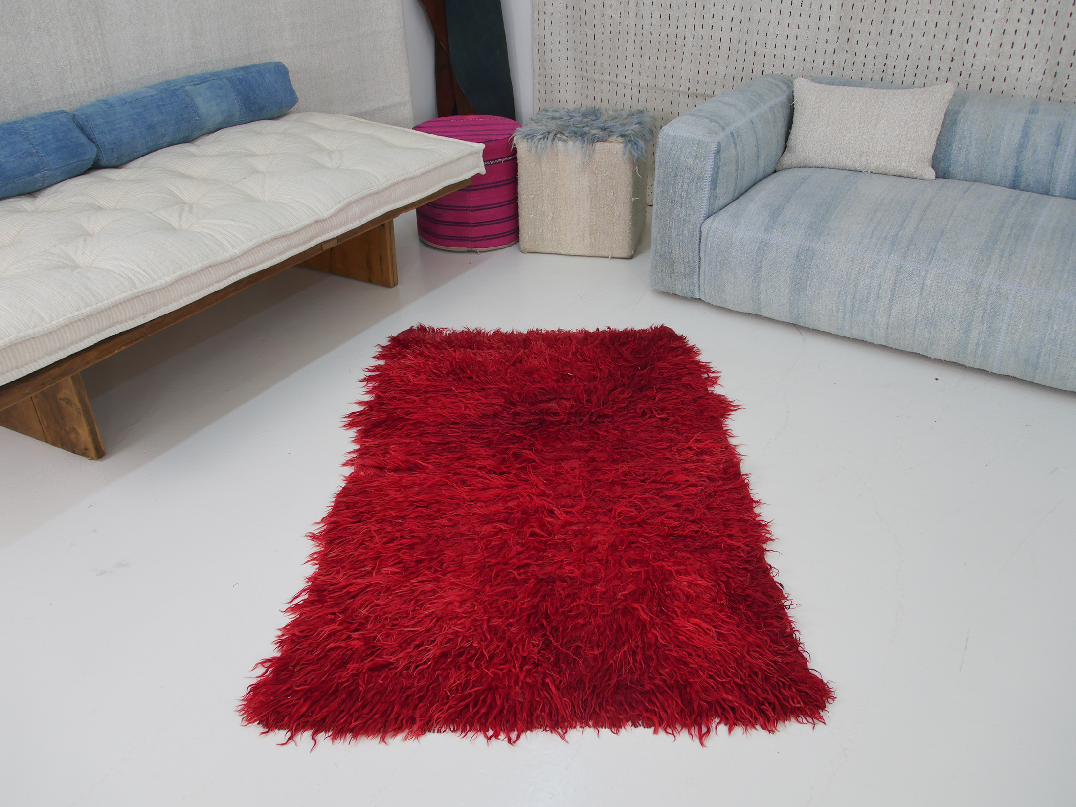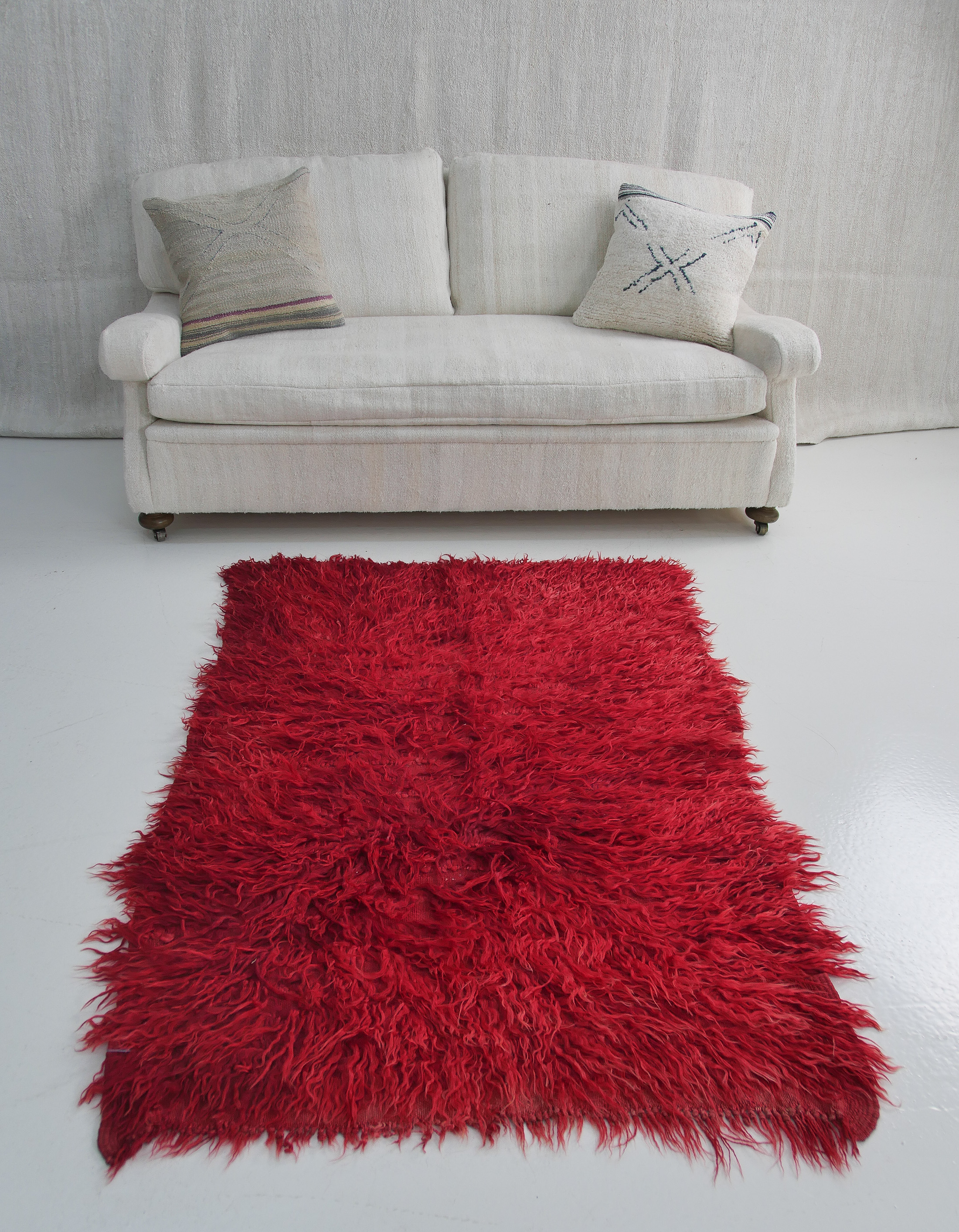 Handwoven from the finest wool, Authentic Vintage Turkish Tulu Rugs often incorporating the lustrous, curly hair of Angora goats, known as mohair, to create its distinctive long-piled, shaggy texture.