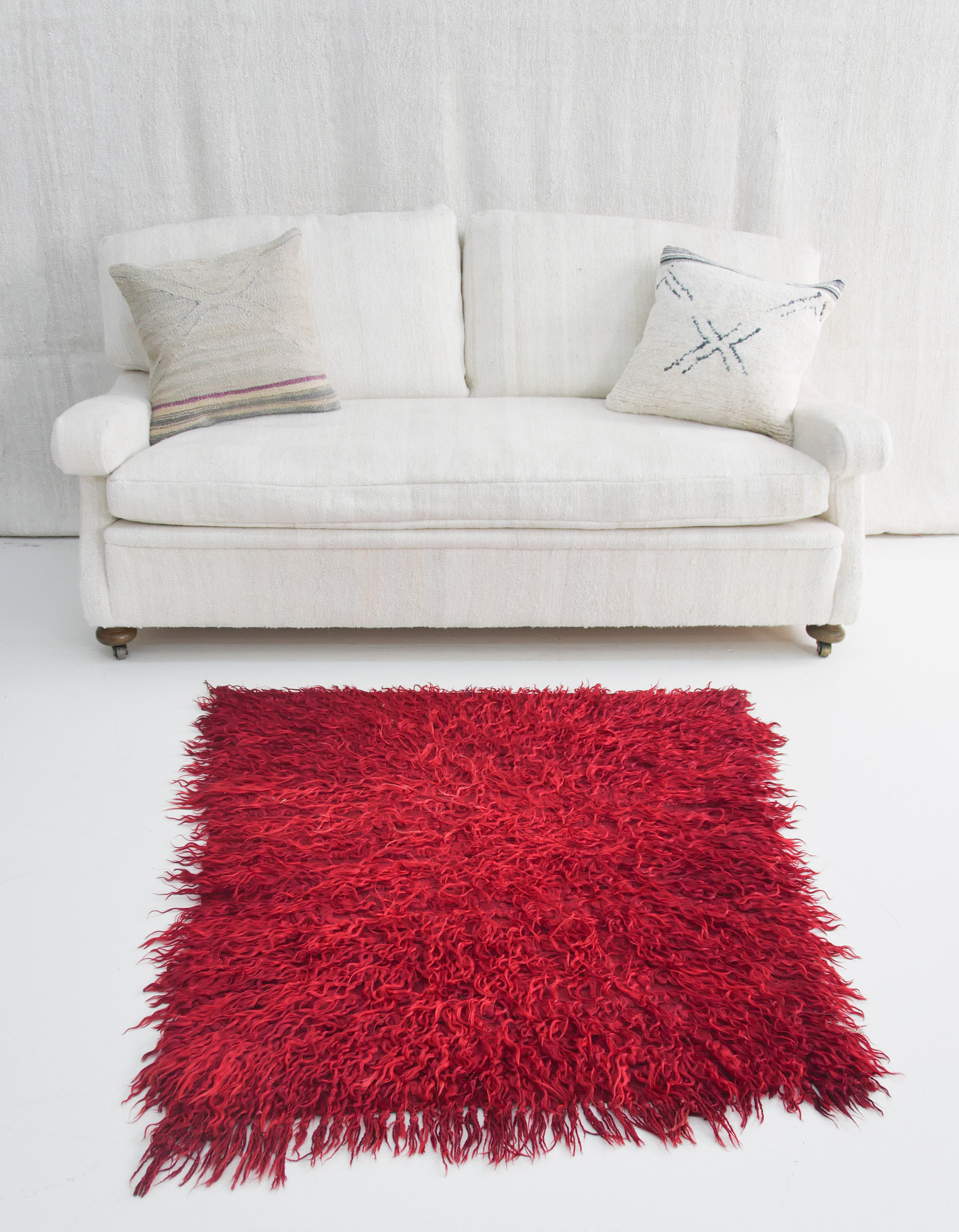 Handwoven from the finest wool, Authentic Vintage Turkish Tulu Rugs often incorporating the lustrous, curly hair of Angora goats, known as mohair, to create its distinctive long-piled, shaggy texture.