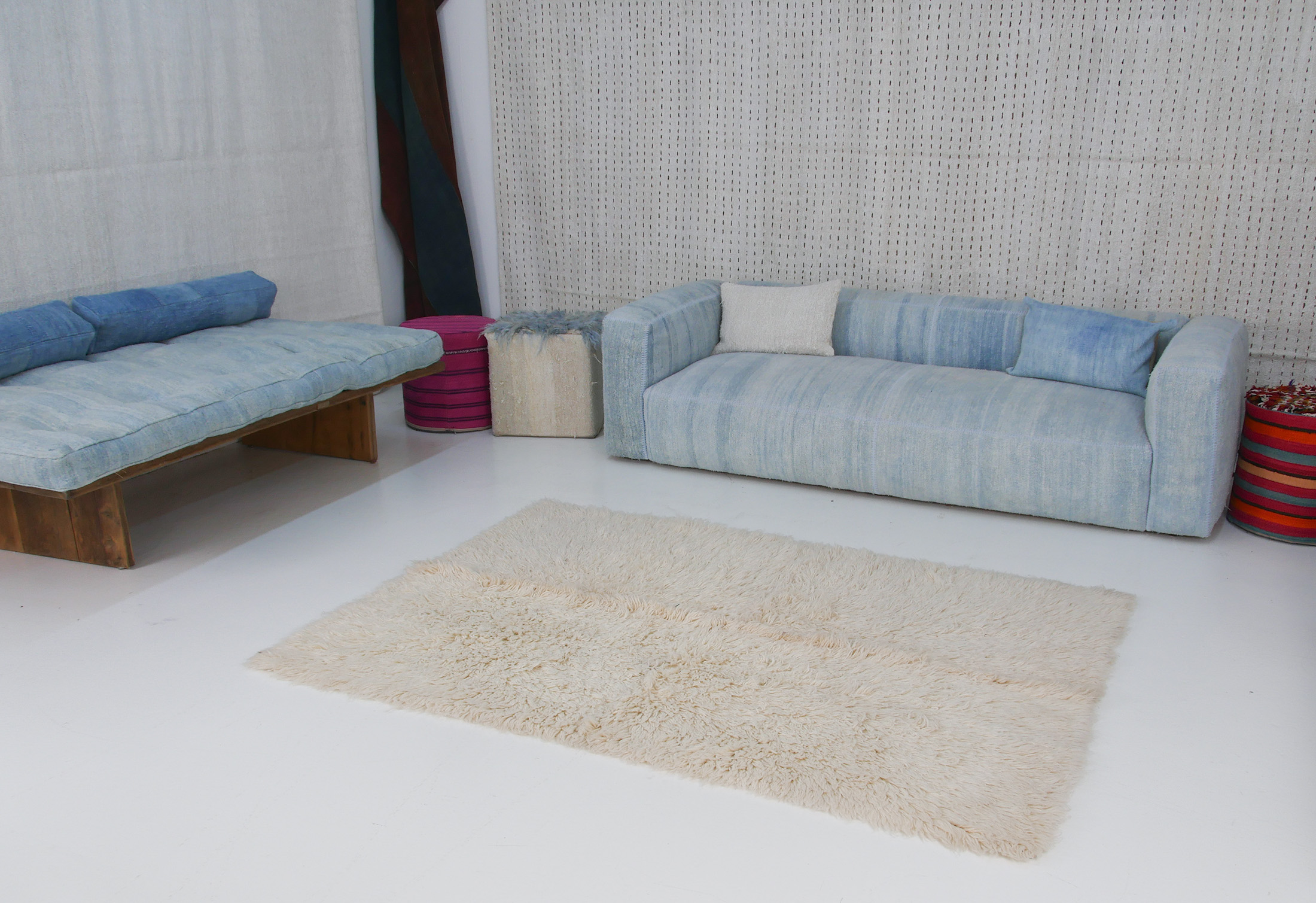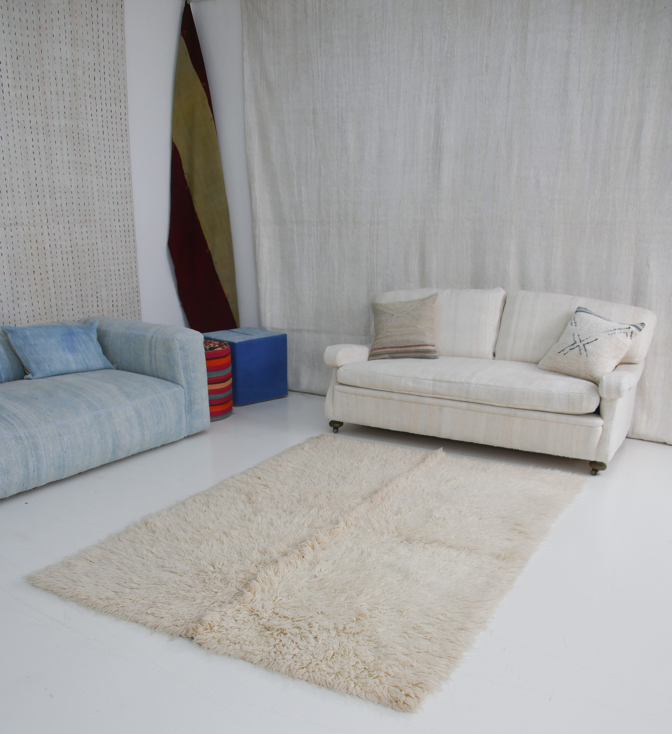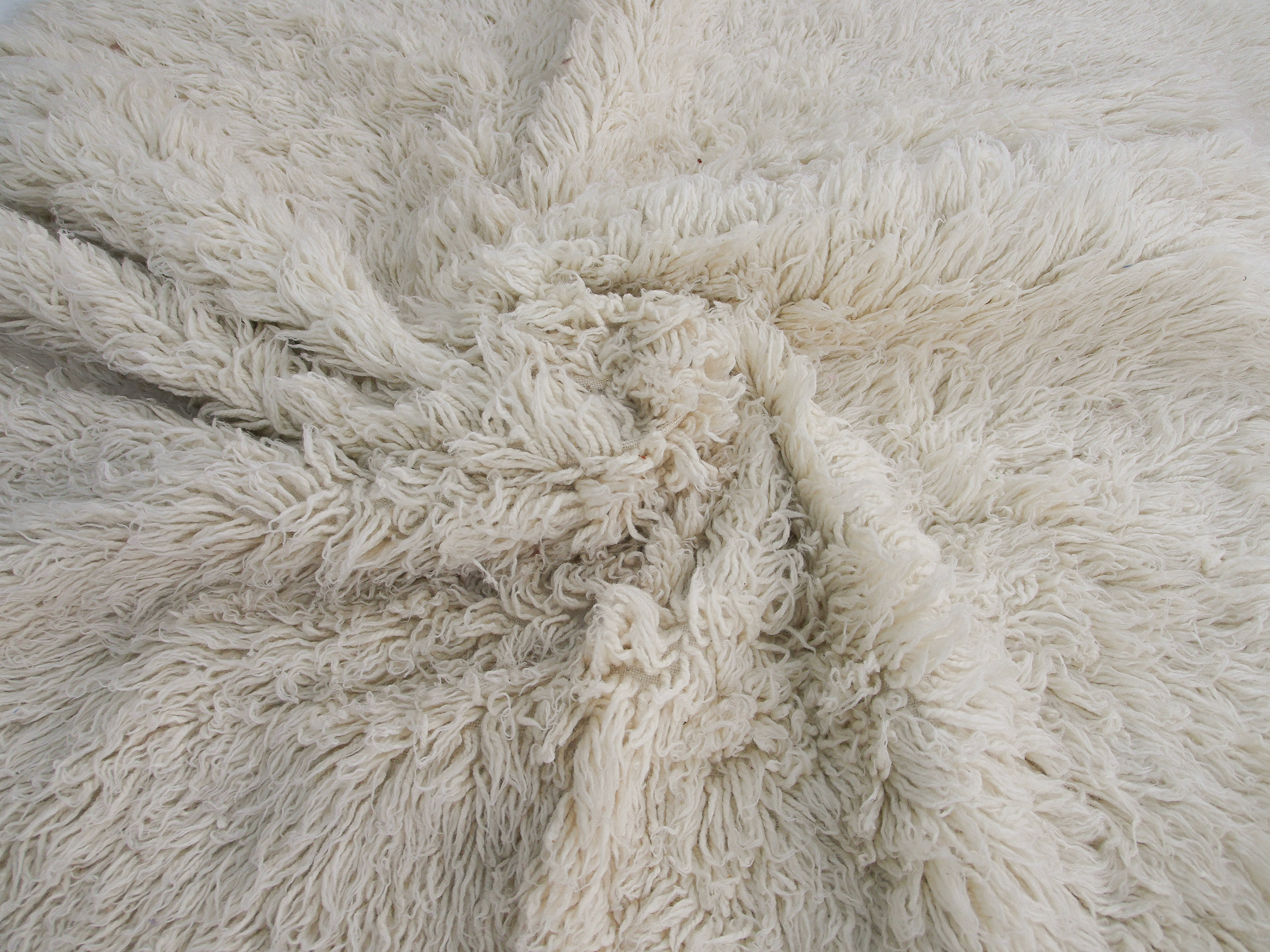 Handwoven from the finest wool, Authentic Vintage Turkish Tulu Rugs often incorporating the lustrous, curly hair of Angora goats, known as mohair, to create its distinctive long-piled, shaggy texture.