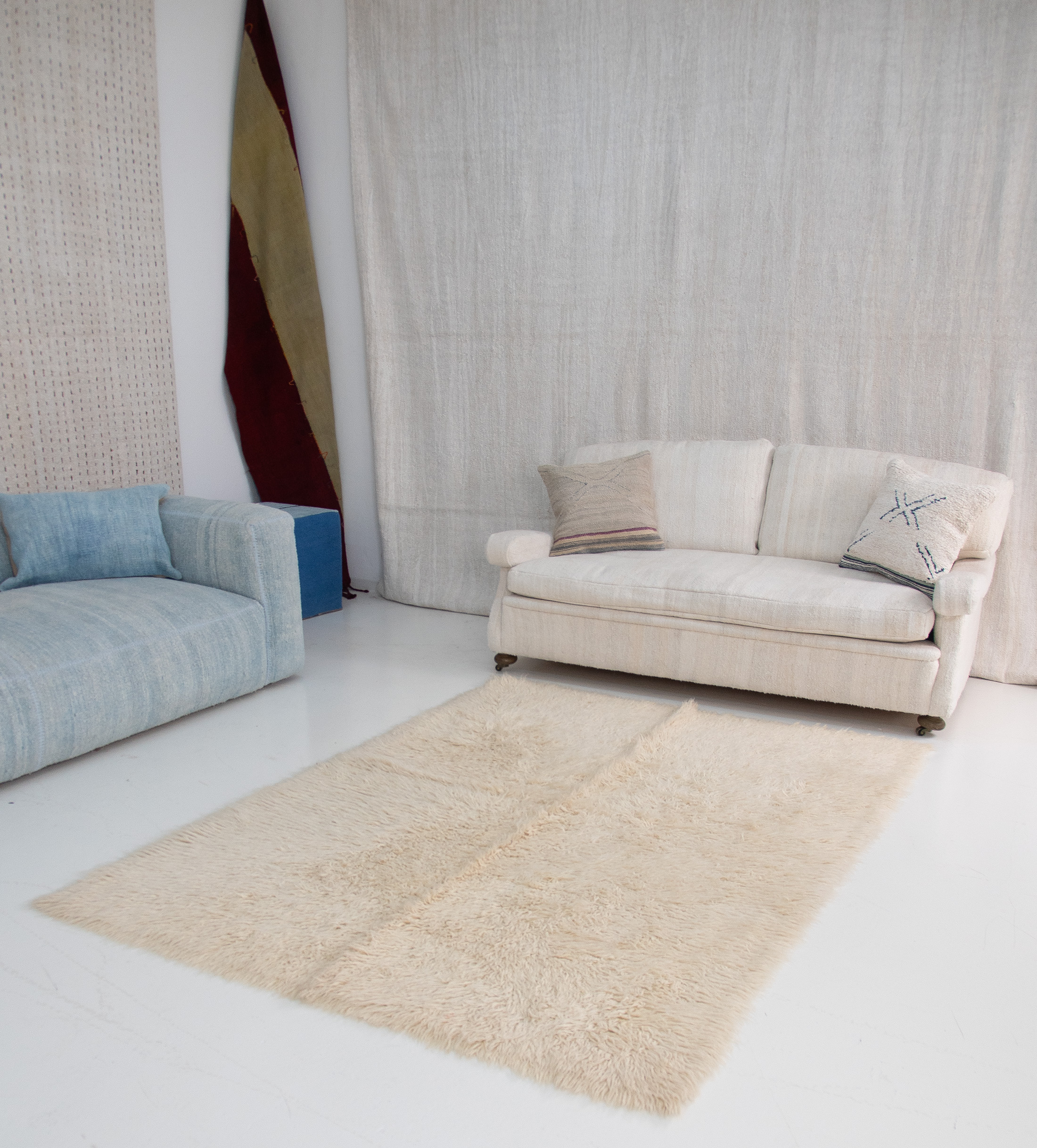 Handwoven from the finest wool, Authentic Vintage Turkish Tulu Rugs often incorporating the lustrous, curly hair of Angora goats, known as mohair, to create its distinctive long-piled, shaggy texture.
