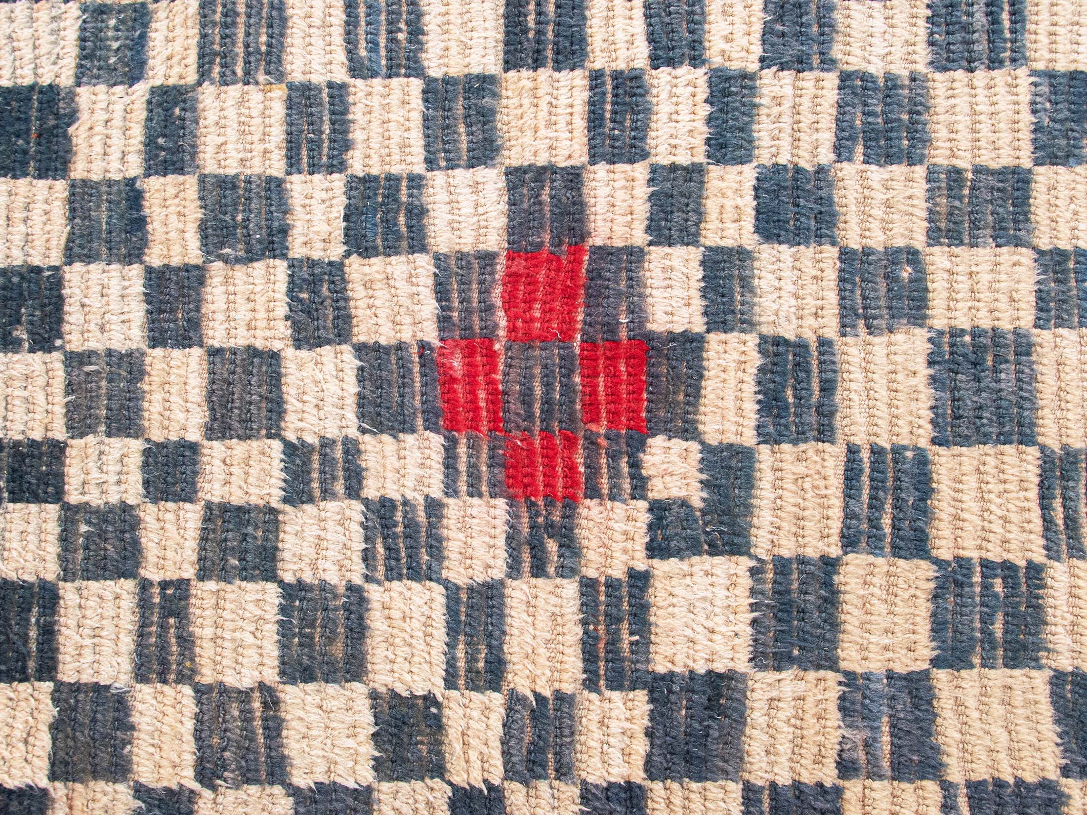 Unique Authentic Vintage Turkish Tulu Rugs | Red Blue Beige Checkered Carpet Runner | 0.77×198 cm – 2.5×6.5 ft