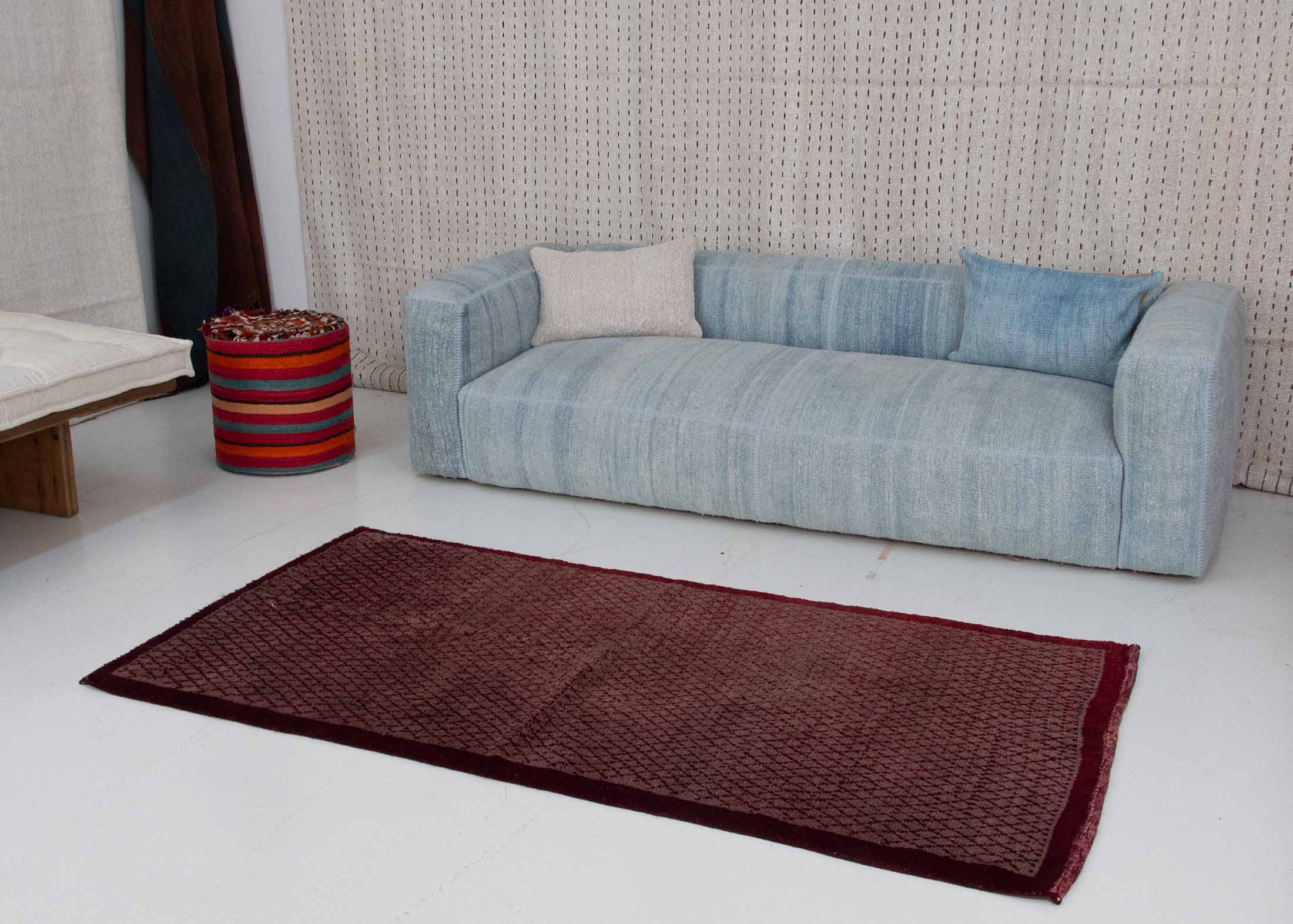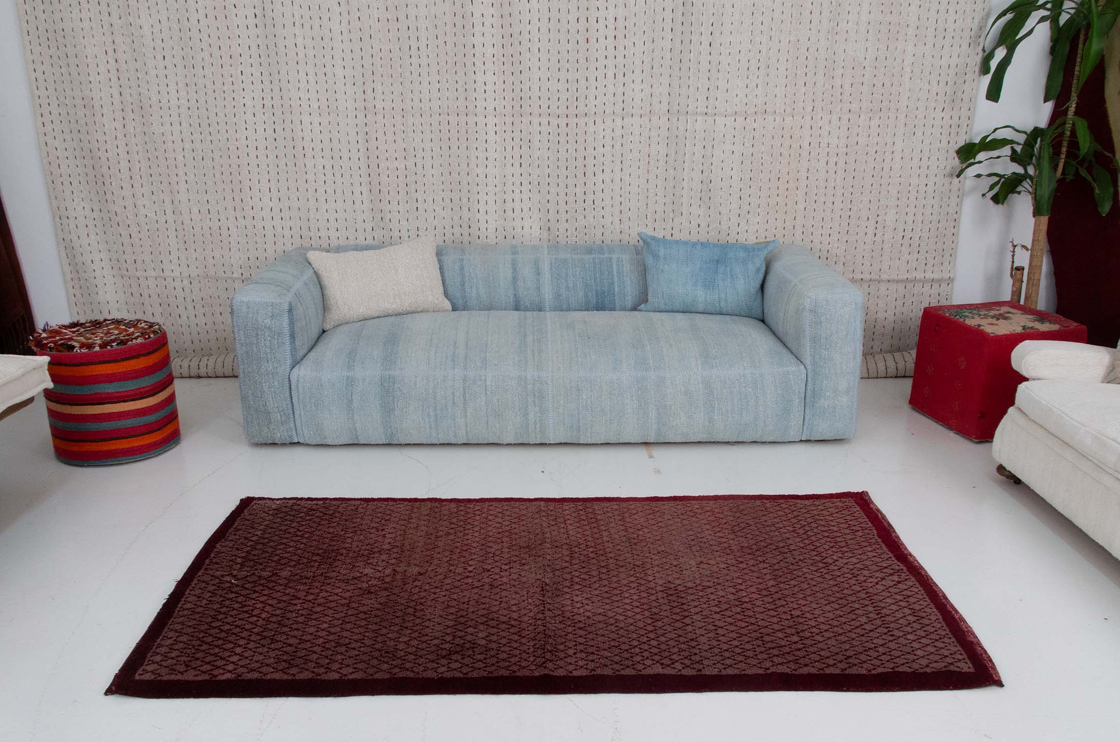 Unique Authentic Vintage Turkish Tulu Rugs | Purple Red Brown Checkered Carpet | 111×223 cm 3.64×7.31 ft 2.47 m2