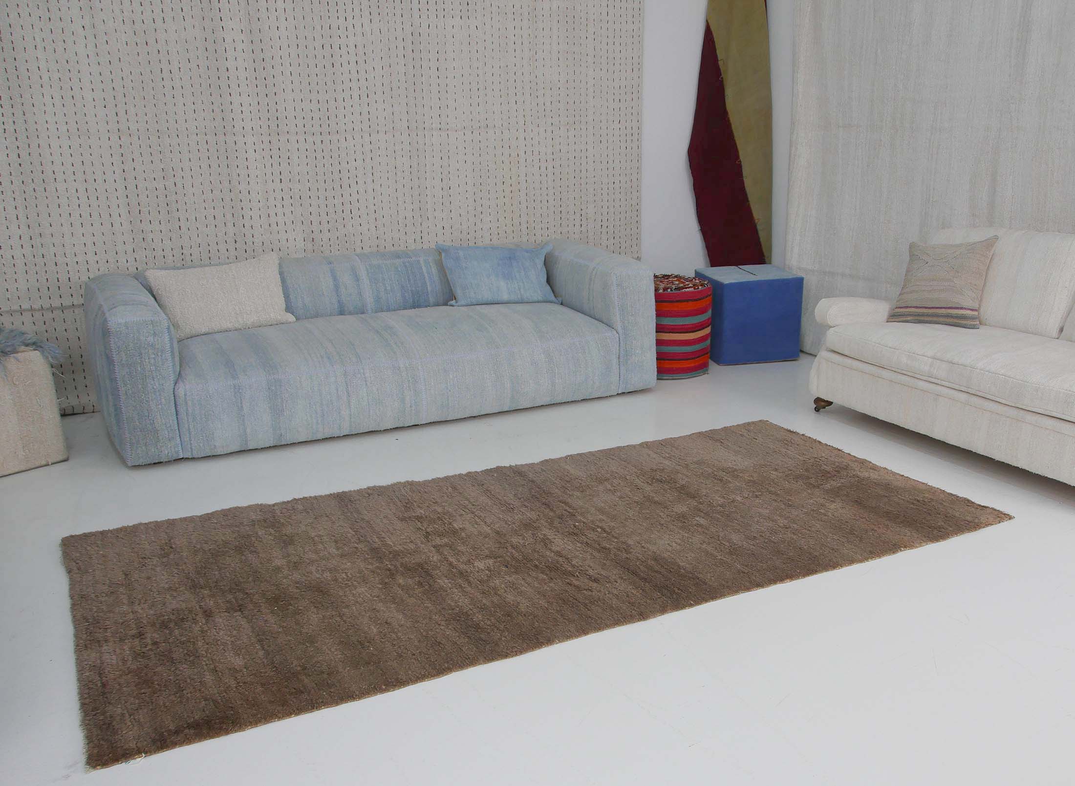 Unique Authentic Vintage Turkish Tulu Rugs | Solid Brown Carpet Runner | 140×287 cm – 4’7×9’5 ft – 4.01 m2