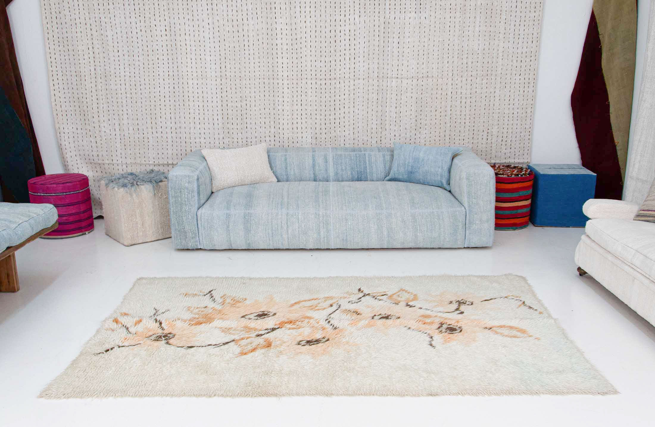 Handwoven from the finest wool, Authentic Vintage Turkish Tulu Rugs often incorporating the lustrous, curly hair of Angora goats, known as mohair, to create its distinctive long-piled, shaggy texture.