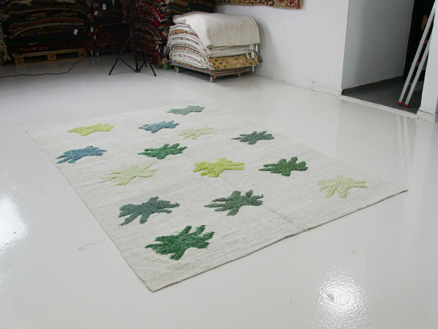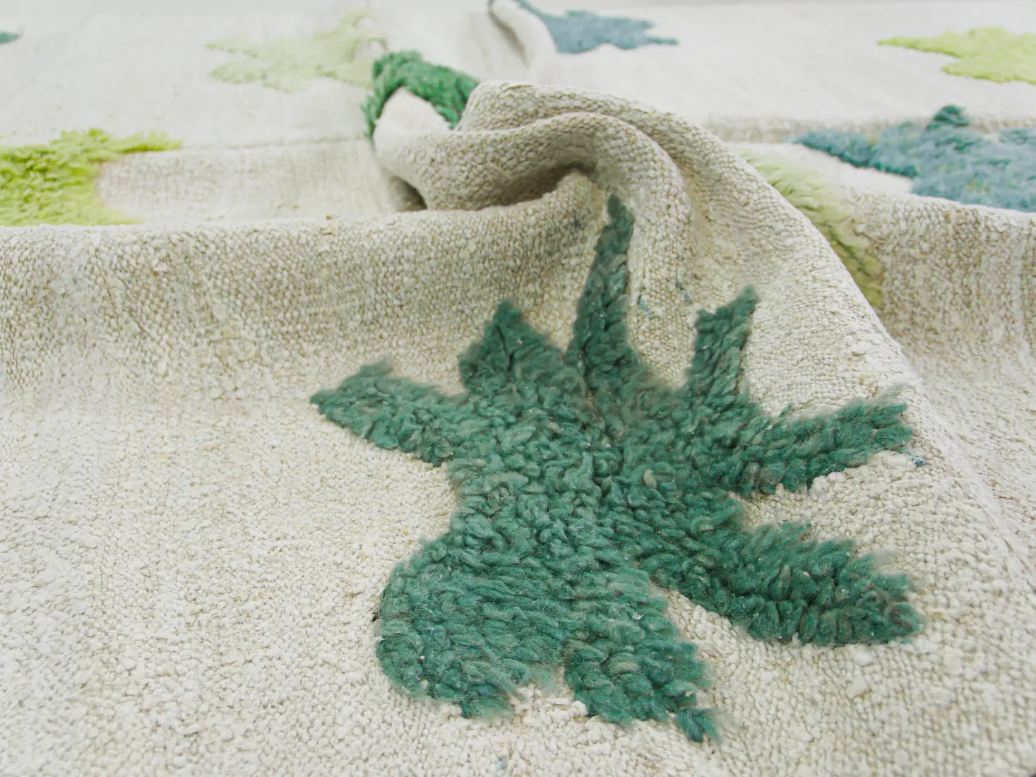 Introducing our Handmade Blue Green White hemp Rug with Pompoms. This stunning rug features a unique blend of colors, including shades of blue, green, and natural hemp color, creating a visually appealing piece that will enhance any space in your home. Crafted with care and attention to detail, this large area rug measures 6’5″ x 9’9″ (197×297 cm) and is made from high-quality hemp , ensuring durability and long-lasting beauty. The addition of delicate pompoms adds a touch of whimsy and charm, making this rug a standout piece in any room. T