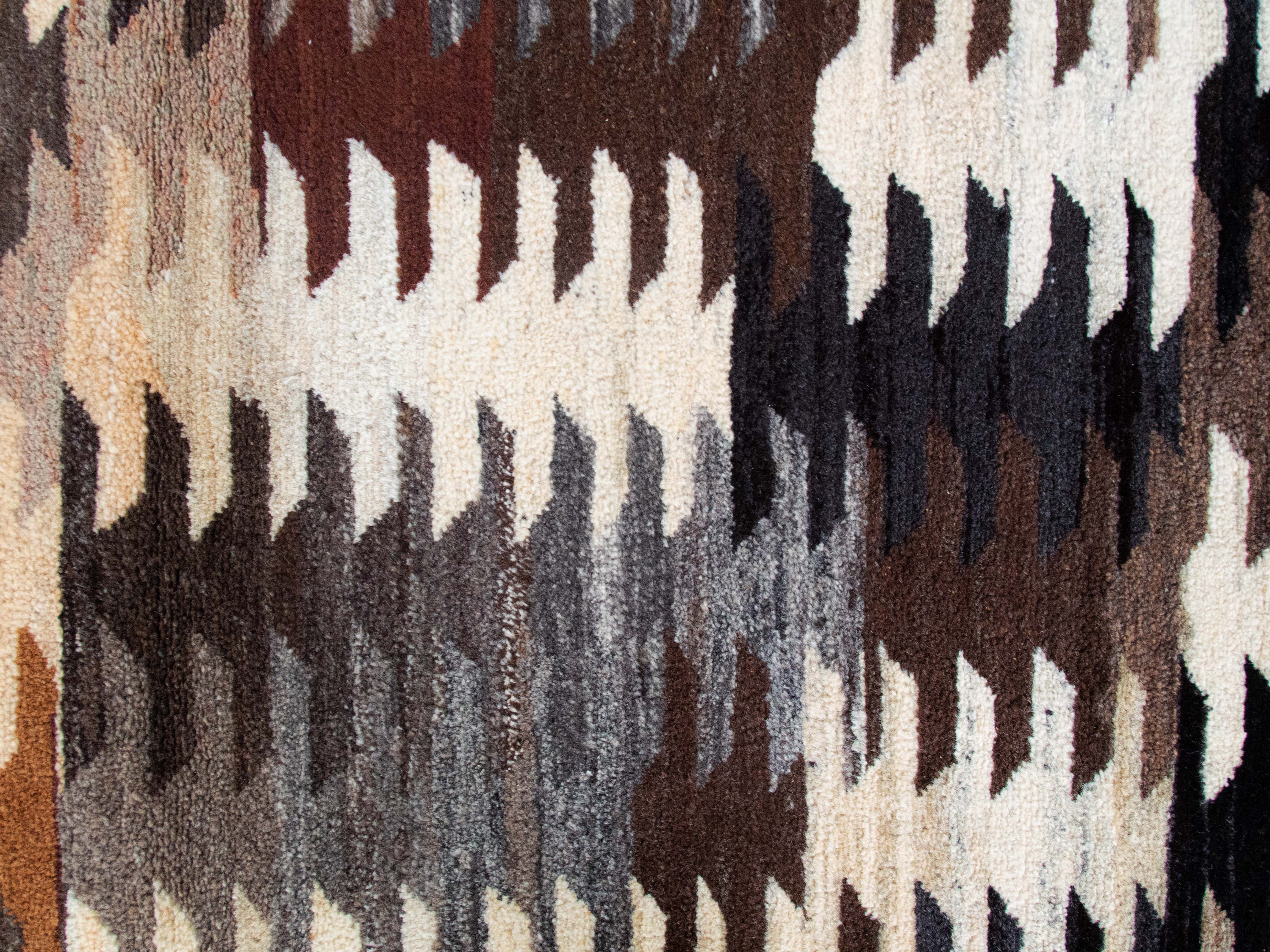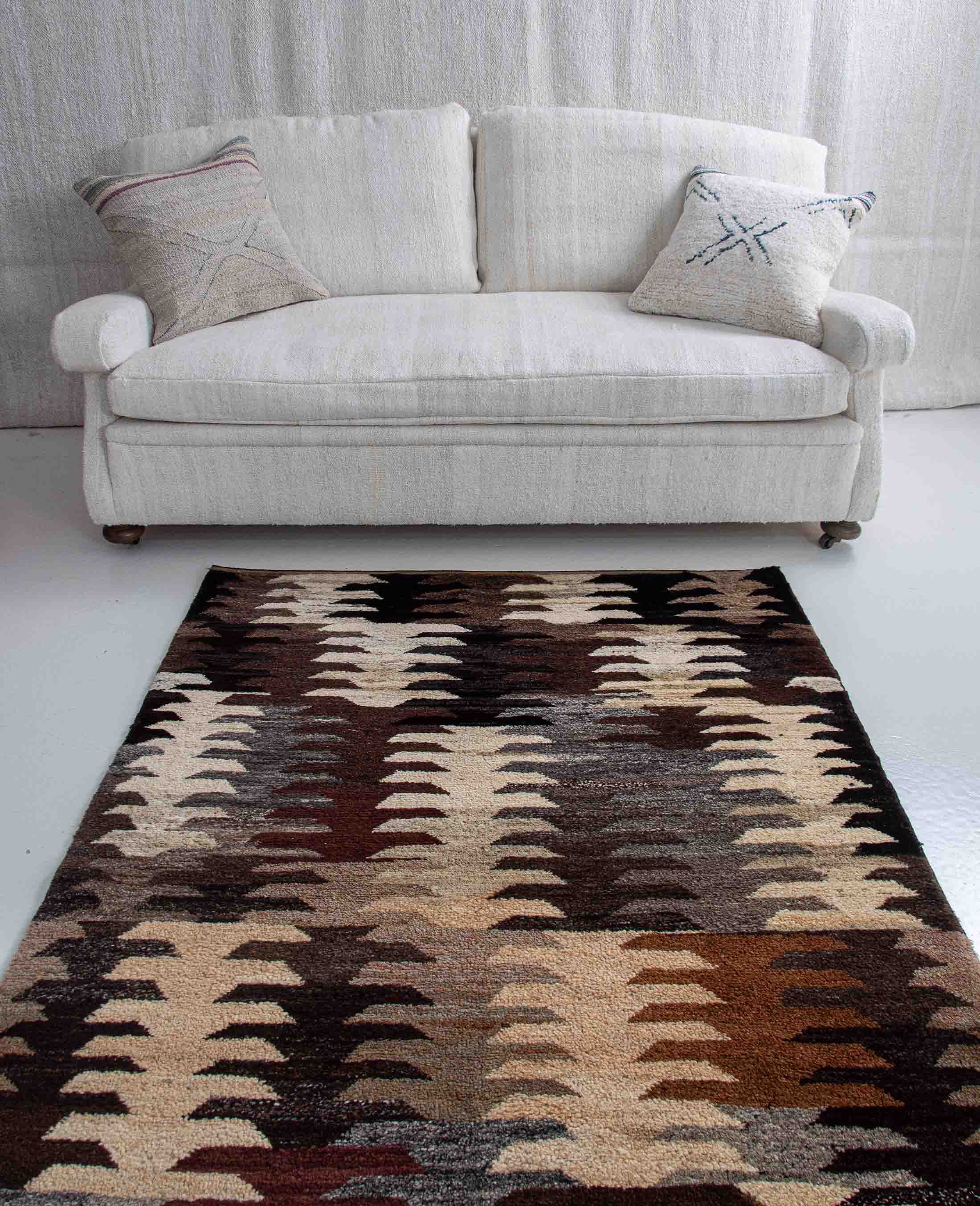 Handmade Turkish Rug Brown Ivory Abstract Pattern – Designer Carpet