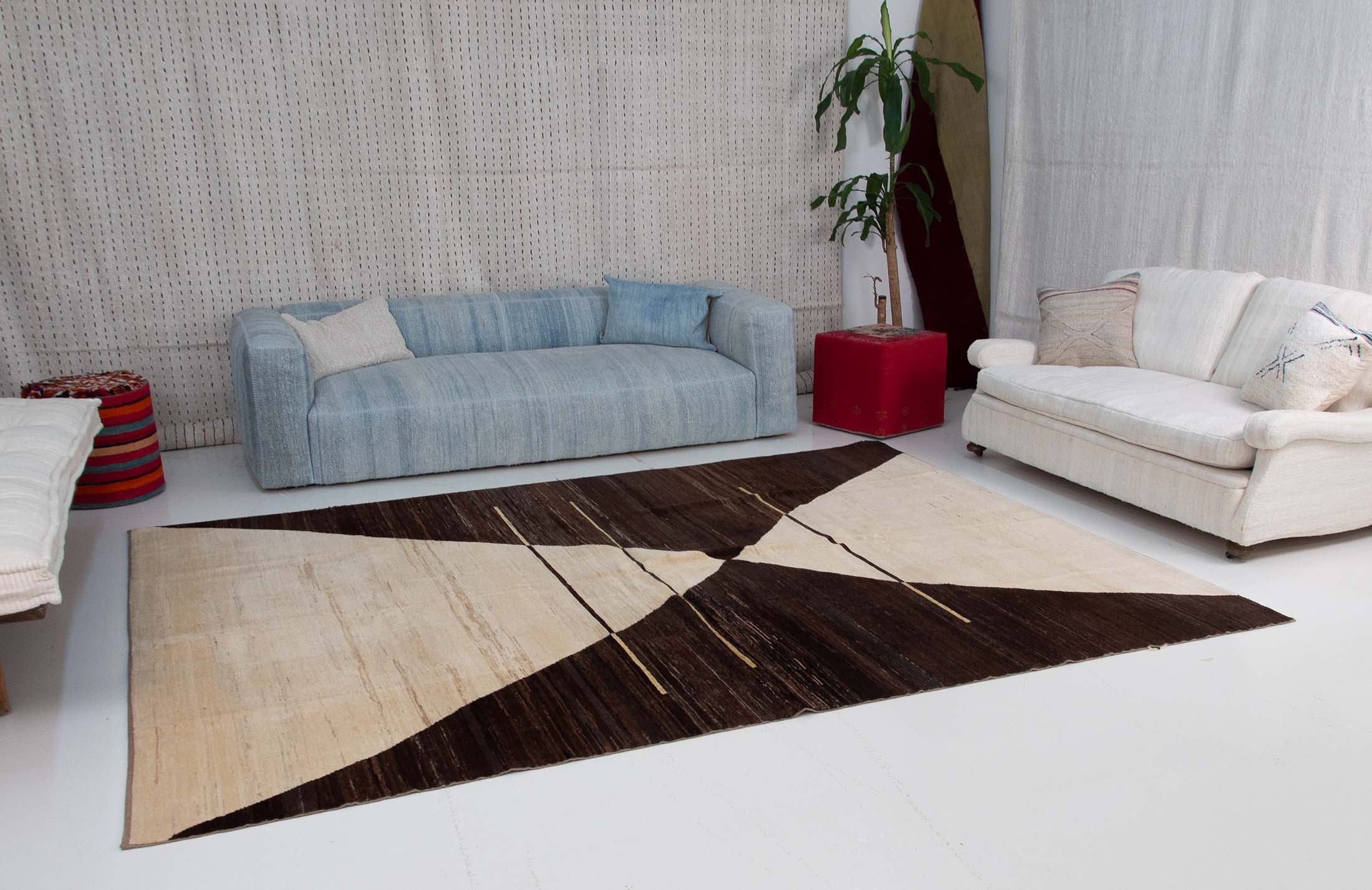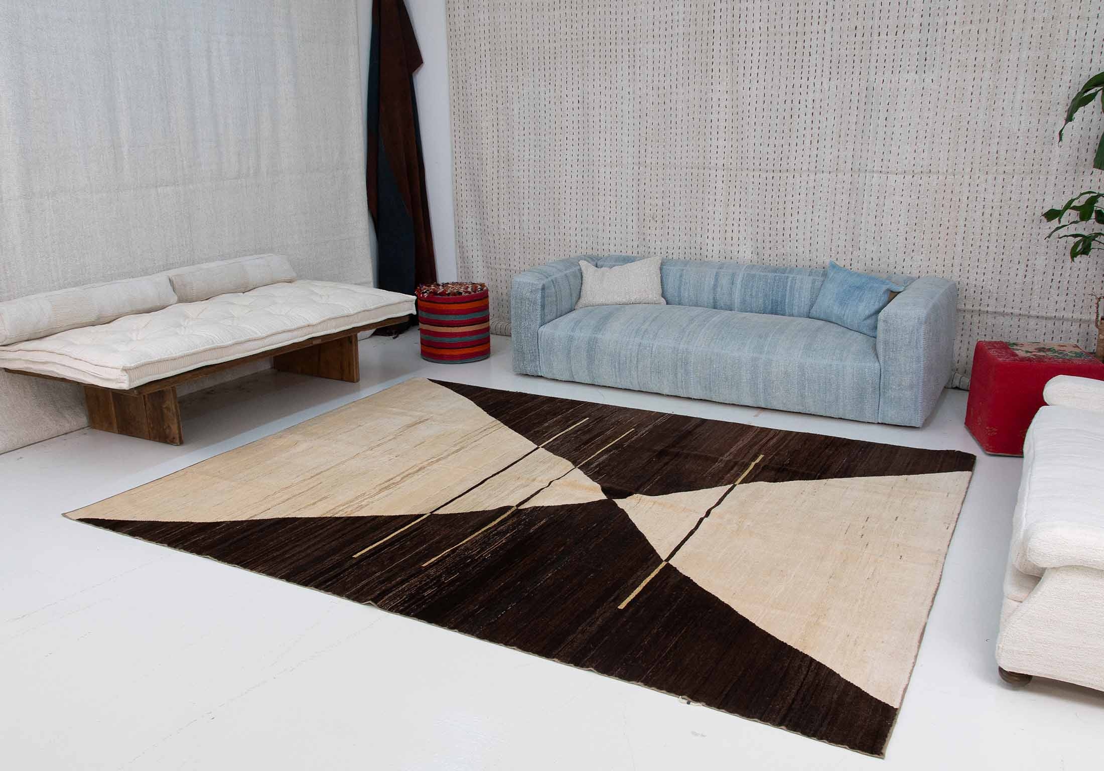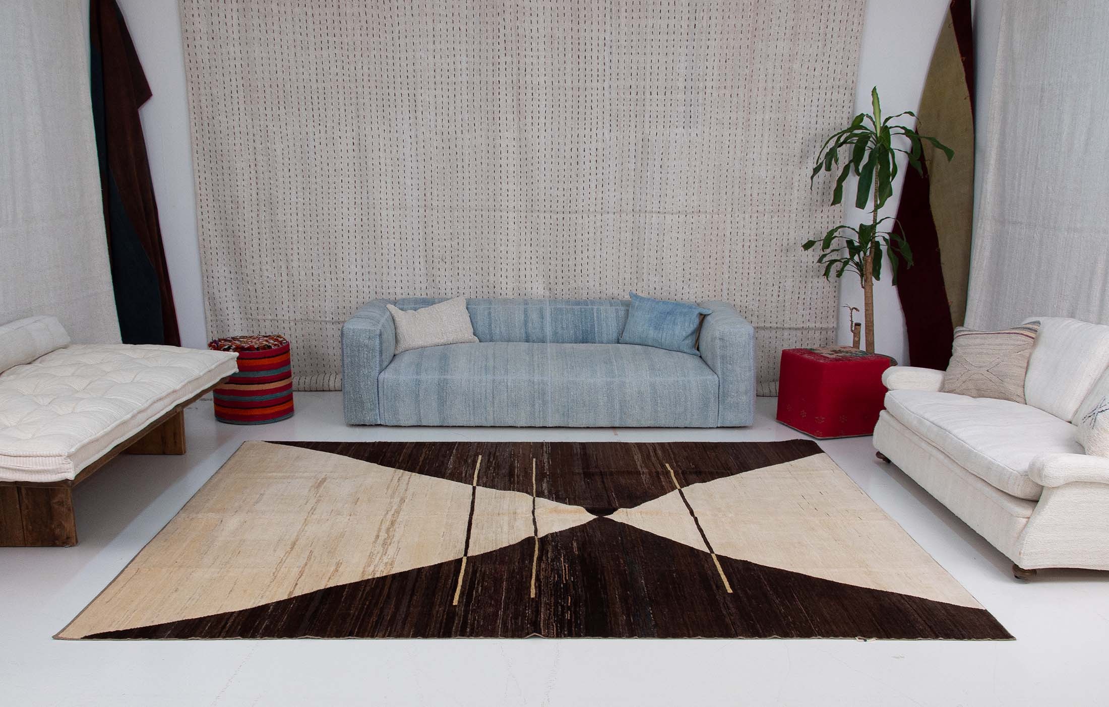 Upcycled Wool in Brown Ivory Color, featuring a Geometric Triangle Design and measuring 248×323 cm (8.13×10.59 ft), product code HL048313, is an exquisite home addition that marries traditional Turkish artisanship with contemporary flair.