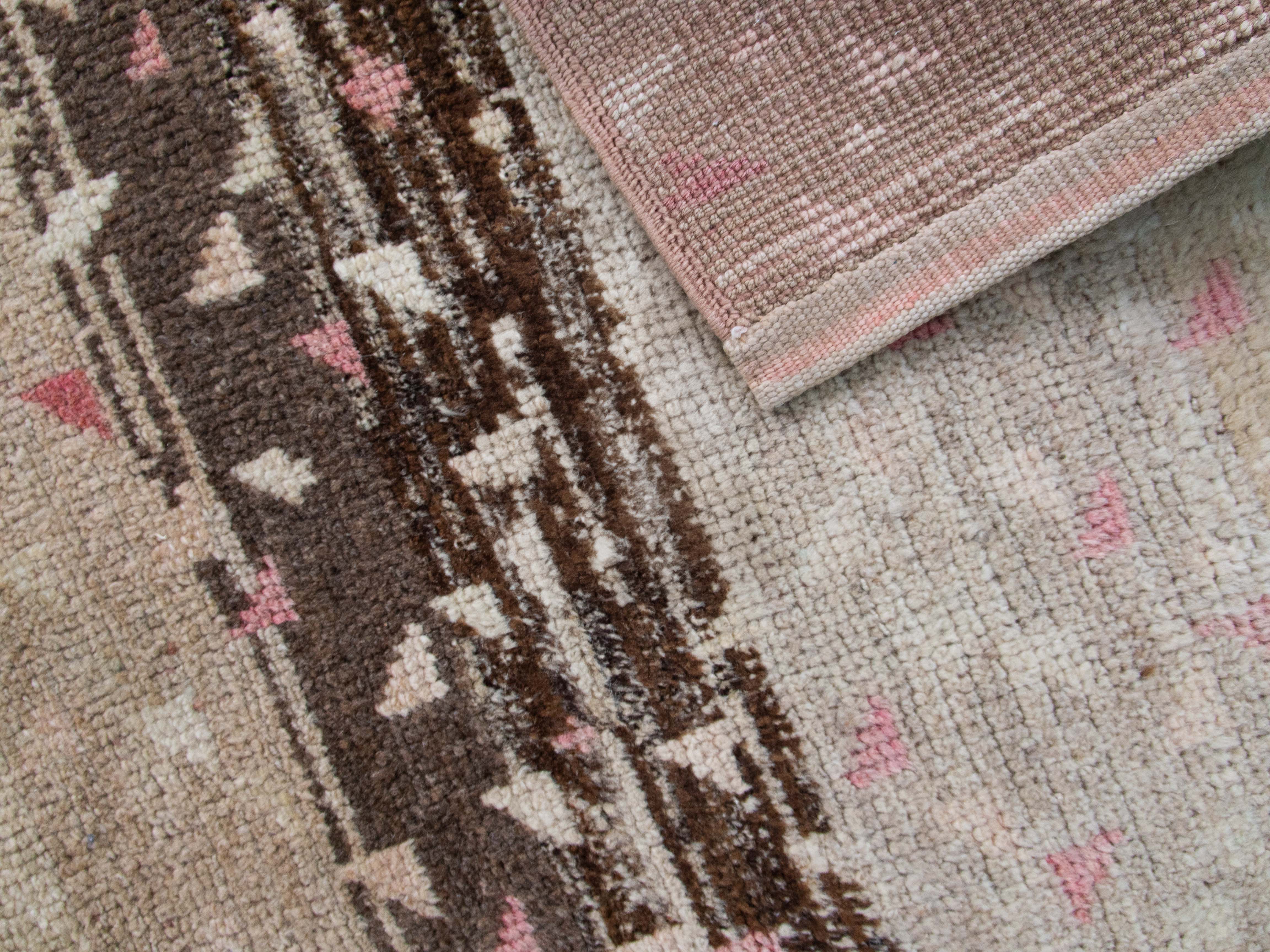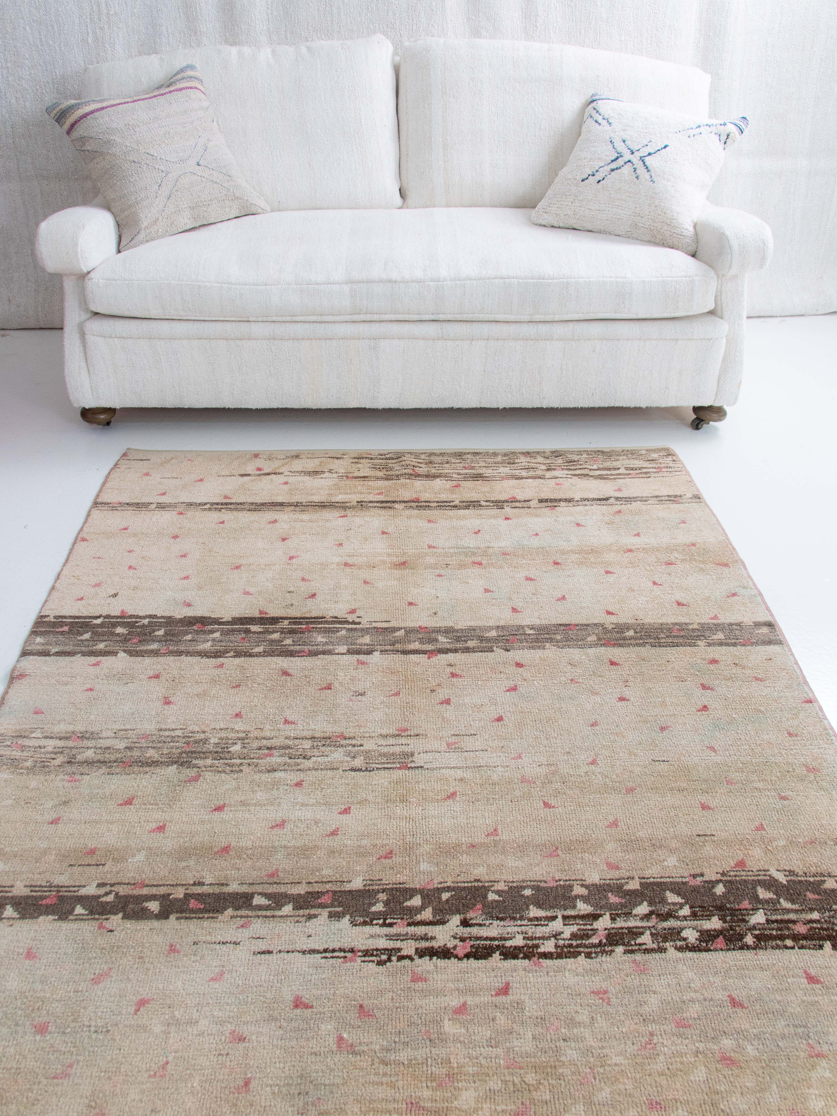 The modern design of this handmade Turkish rug is what truly distinguishes it. The interplay of brown shades in the pattern introduces texture and dimension, fostering a serene ambiance in any setting. Artisans with expert skills meticulously create each rug, focusing on detail for a superior quality result.