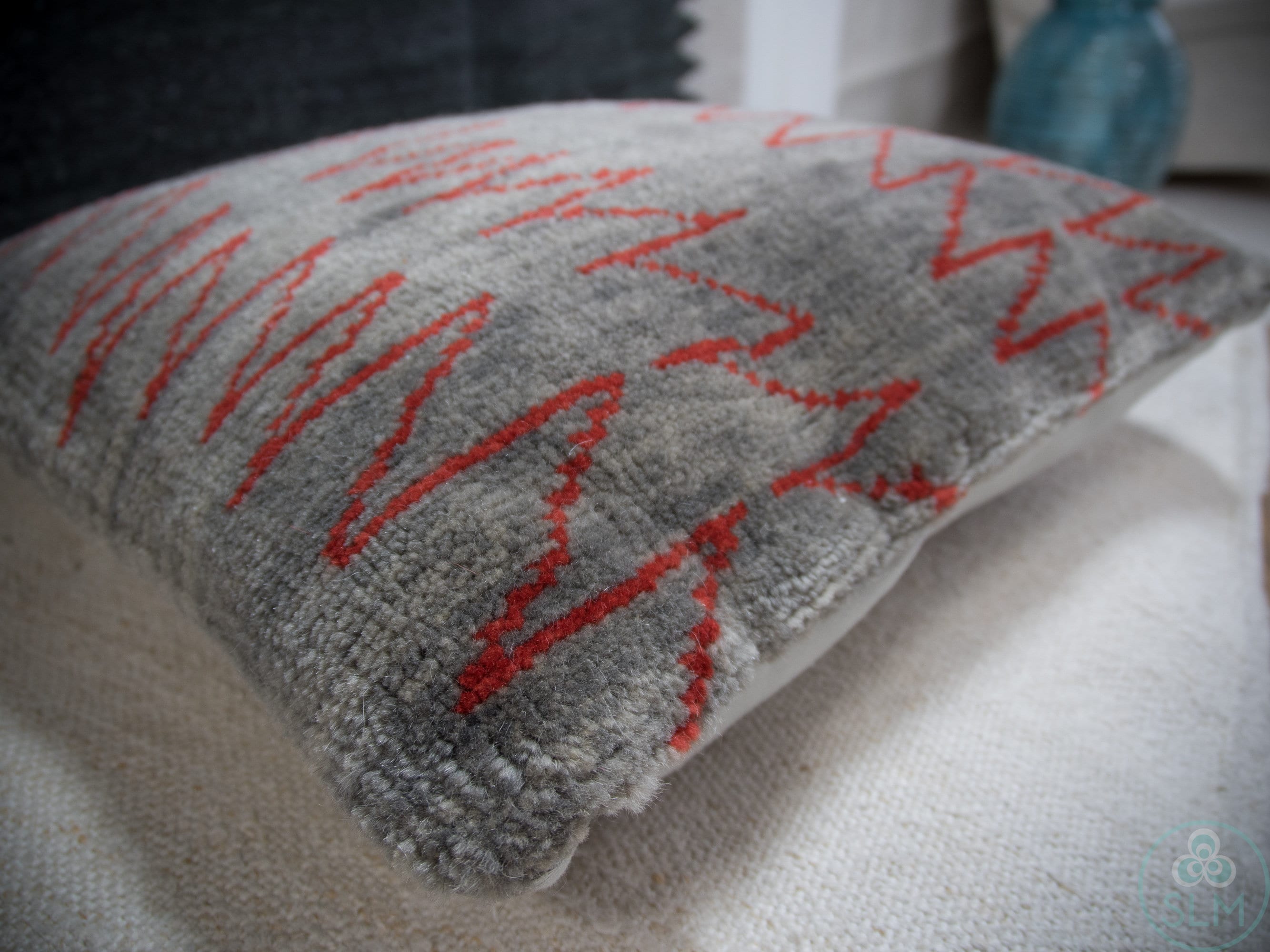 Pillow cover is hand woven in the Turkish Oushak tradition.
