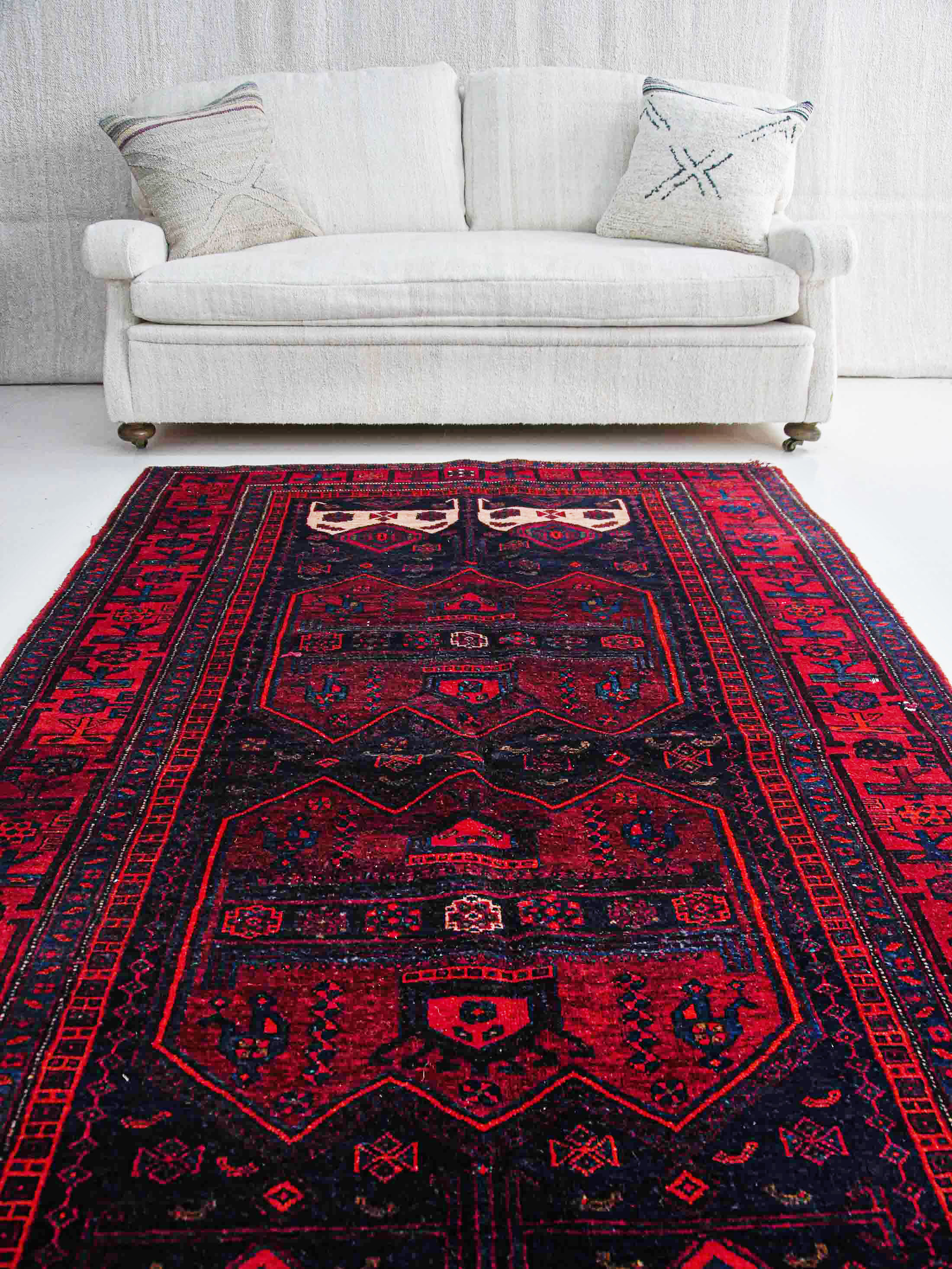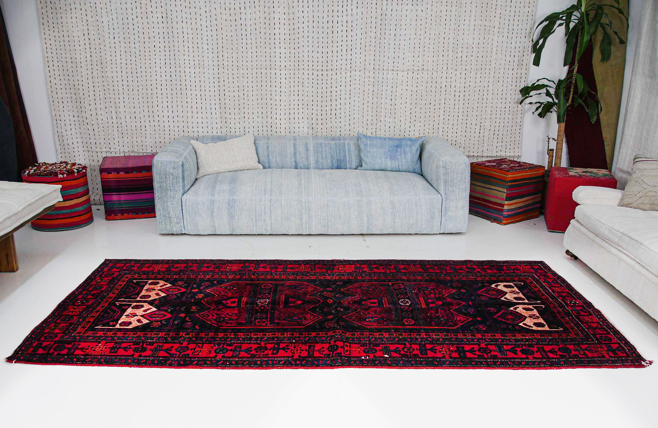Elevate your home decor with the timeless beauty and cultural significance of this Handwoven Red Blue White Vintage Rug. Add it to your space and marvel at how it effortlessly ties together your aesthetic, whether modern or traditional. Don’t miss the chance to make this piece yours and relish in the artistry and history it brings to your home.