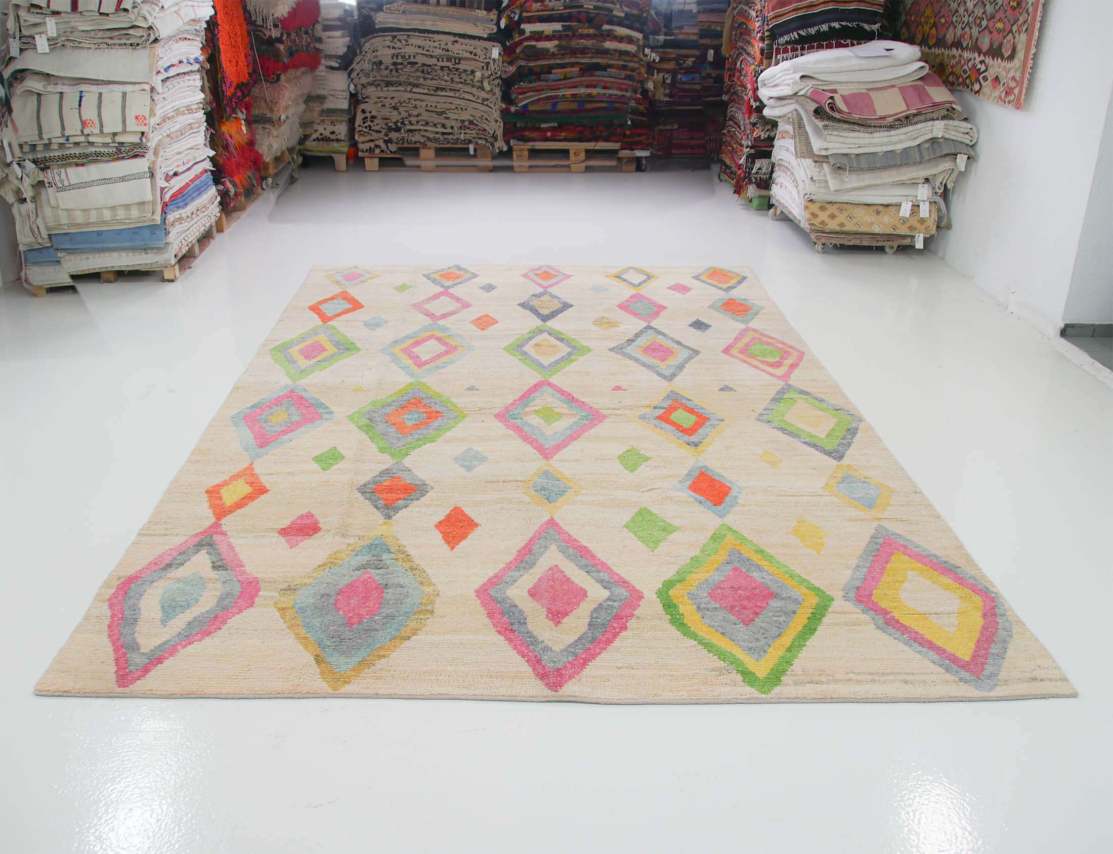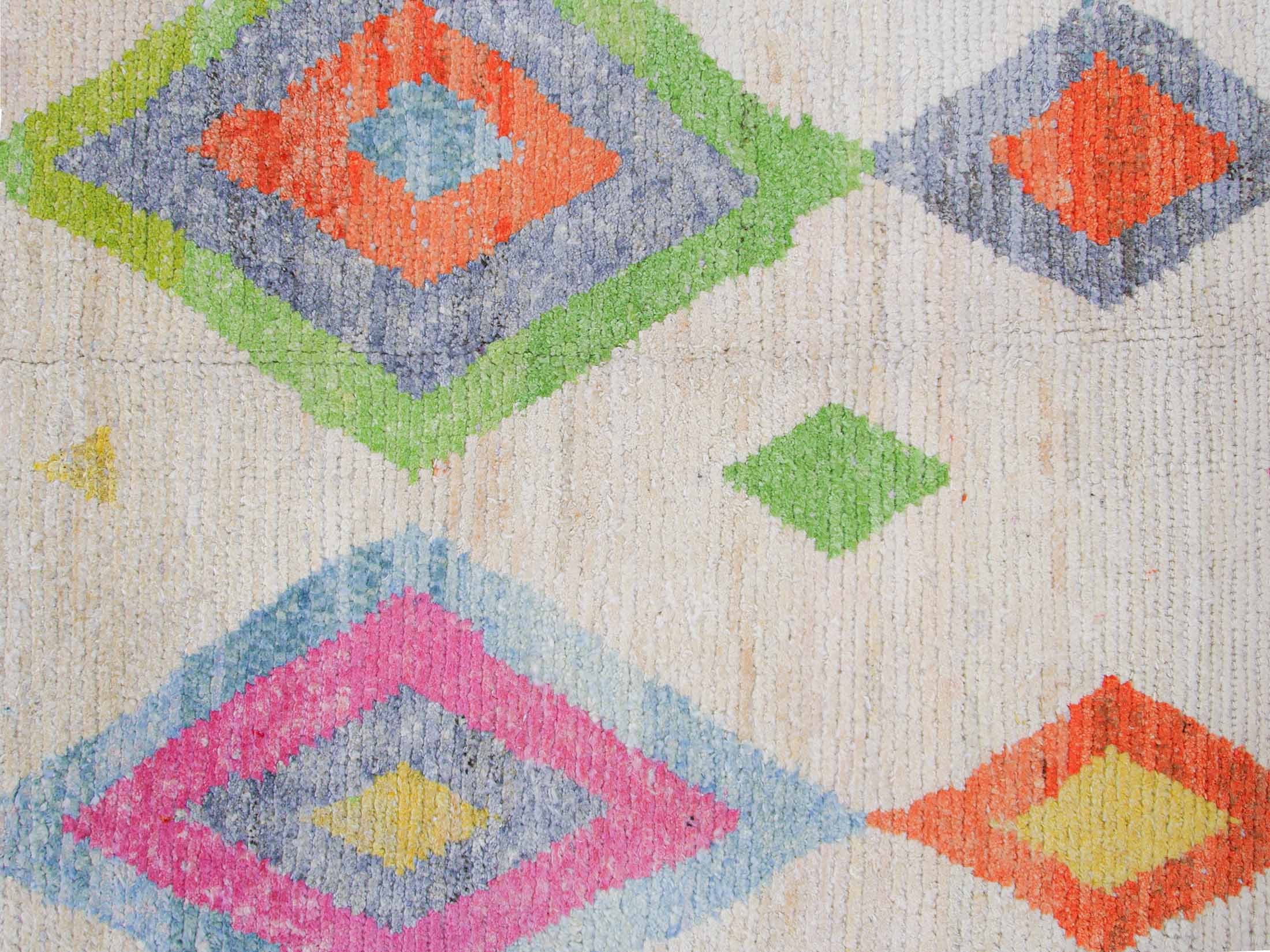 - Color: Ivory base with colorful diamond pattern lines