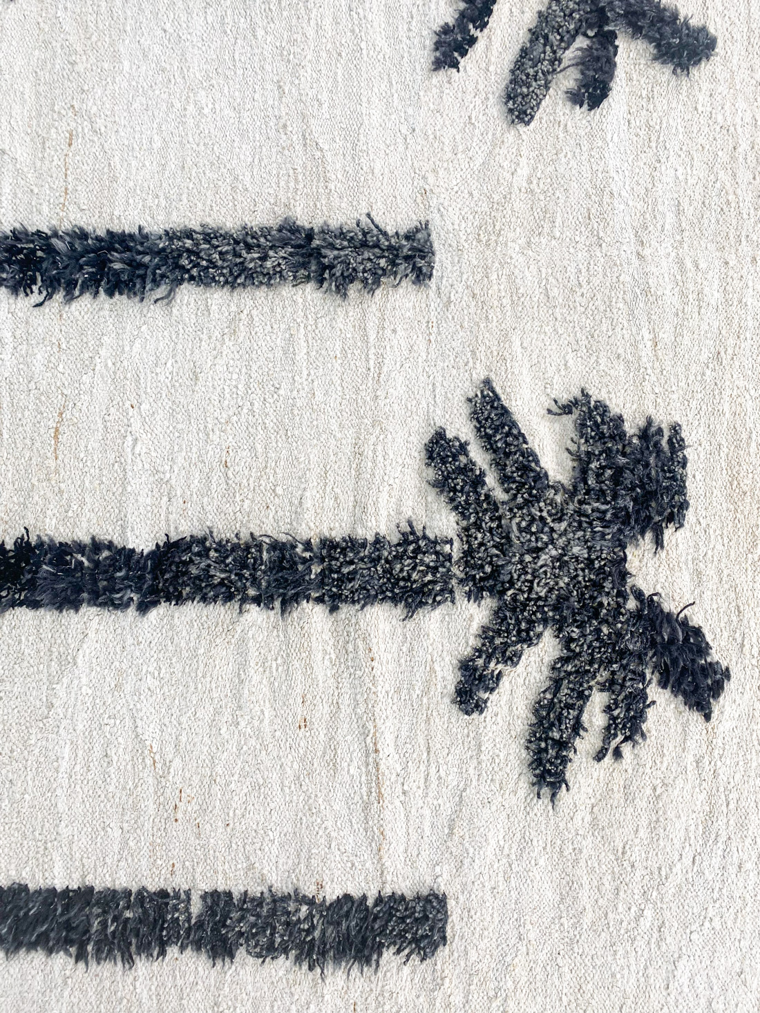 The square design and appeal of this rug make it a perfect choice for those who appreciate eclectic interior styles. Kilim’s flatweave pile plus knotted wool palm motifs height provides a plush and comfortable feel underfoot, adding warmth and texture to your living space.
