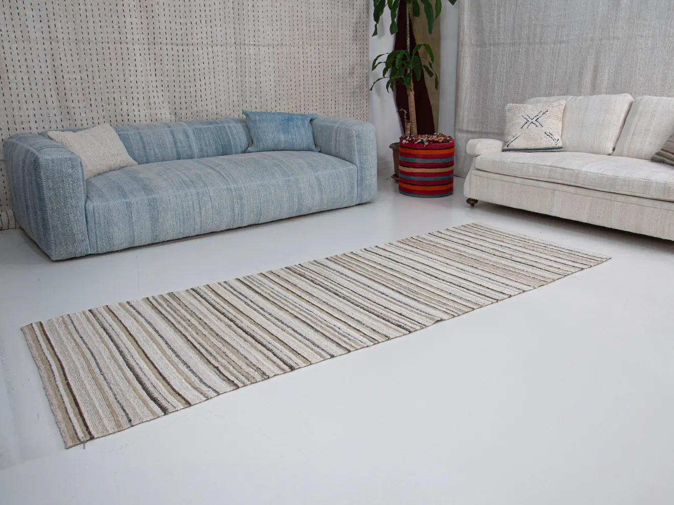 The neutral fiber colors that adorn these kilim runner rugs offer a versatile canvas for interior designers to unleash their creative visions. From the warm, earthy tones to the cool, calming hues, these rugs seamlessly blend with a multitude of design aesthetics, allowing the space to truly shine. Whether you seek to create a serene oasis or a bold, contemporary statement, our kilim runners will serve as the perfect foundation.