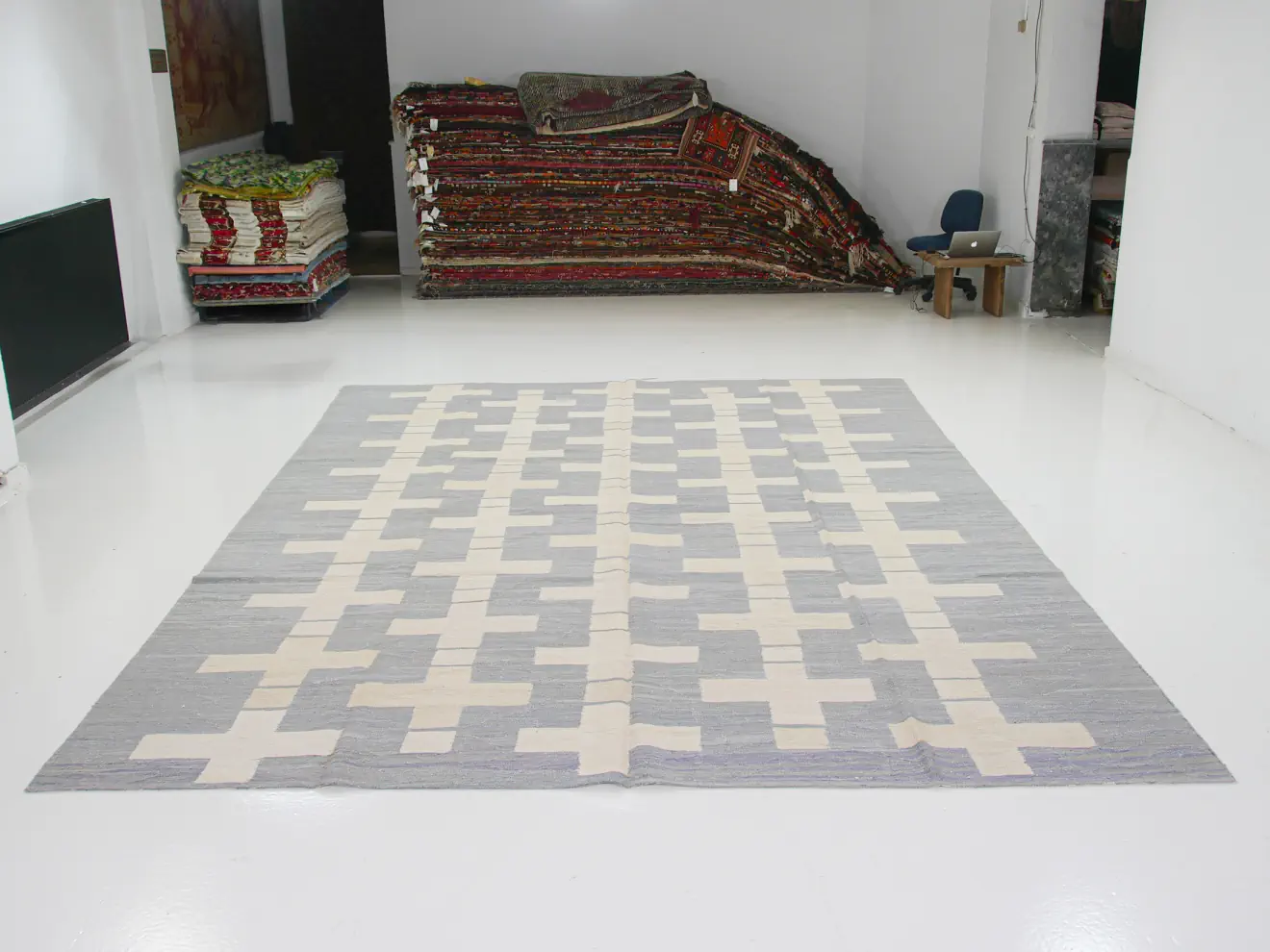 Faded Azure Serenity – Handwoven Kilim (10’2×13 ft)