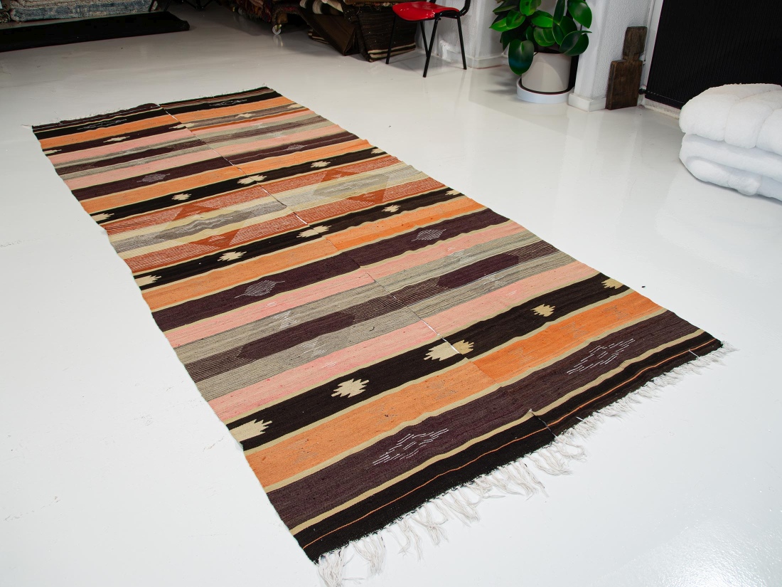Transform your home with the timeless beauty and exotic craftsmanship of the Striped Wool Runner Rug, a genuine Turkish Kilim that brings a touch of Anatolia right into your living spaces. Handwoven with the finest wool, this authentic piece tells a story of tradition, culture, and artisanal skill.