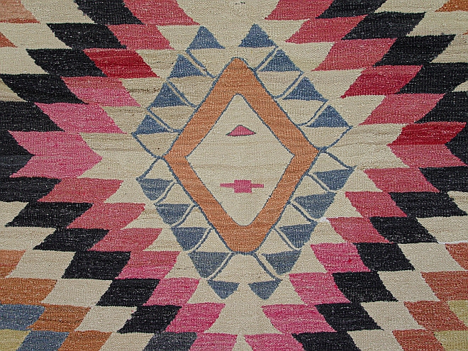 Knotisse Fine Weaving prioritizes sustainability by upcycling old organic yarns to create eco-friendly rugs without compromising on quality or design. We work with skilled artisans who breathe new life into pre-consumer yarns, transforming it into unique and beautiful kilim rugs. By choosing an upcycled rug, you’re not just adorning your floor; you’re making a conscious choice for the environment while supporting artisanal craftsmanship. As this: Immerse your home in warmth and earth tones with this stunning upcycled wool kilim rug. Handwoven from reclaimed organic wool, each thread carries the heritage and character of its past life, while being reborn into a modern design masterpiece. The rug’s multicolor diamond pattern brings vivacity in every room, seamlessly blending with various décor styles. Upcycled Wool is used to produce this Anatolian Archaic Pattern New Kilim Rug similar to the Southwestern Style with natural colors. Large Area rug