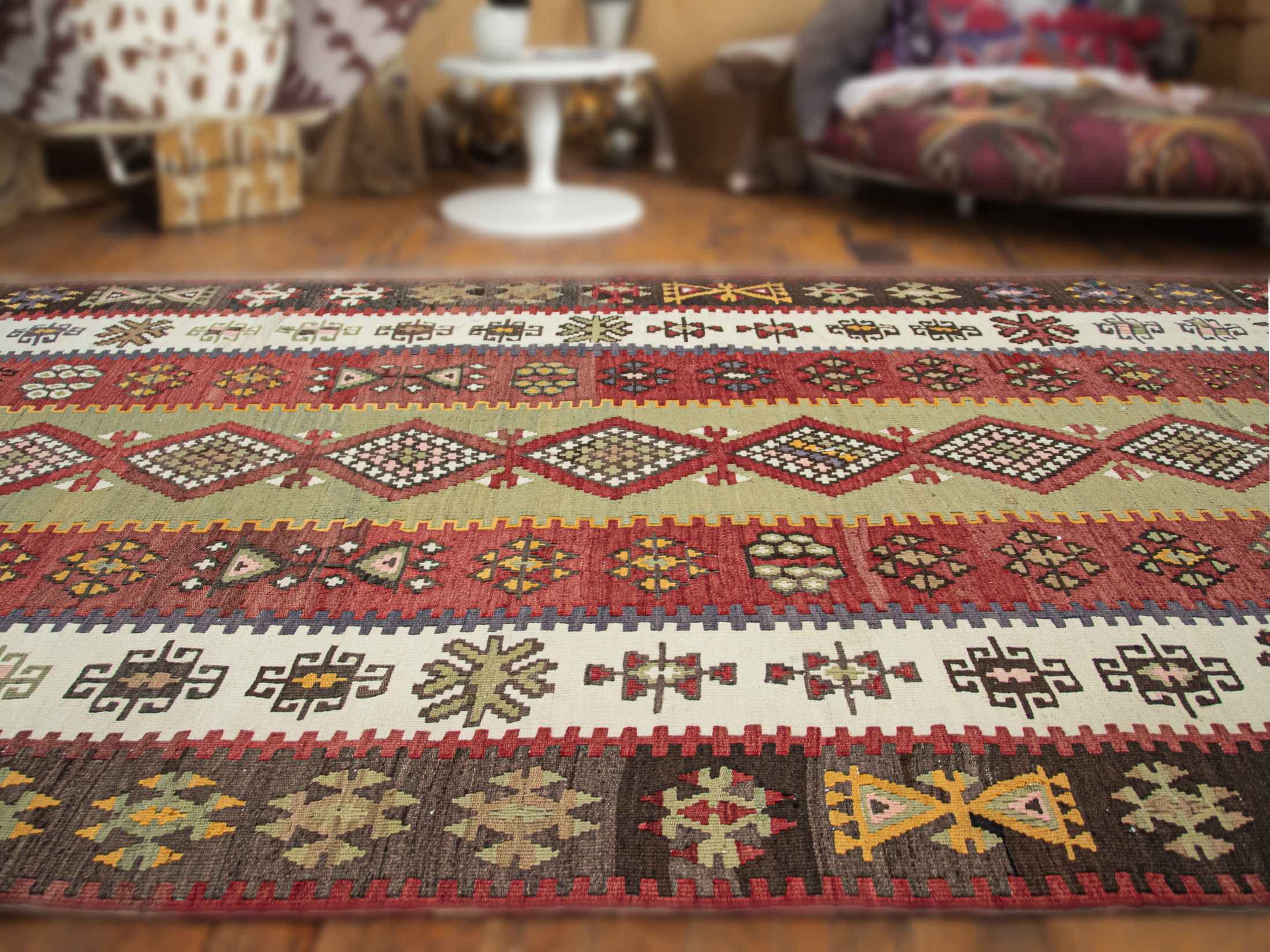 - Handwoven in traditional kilim art