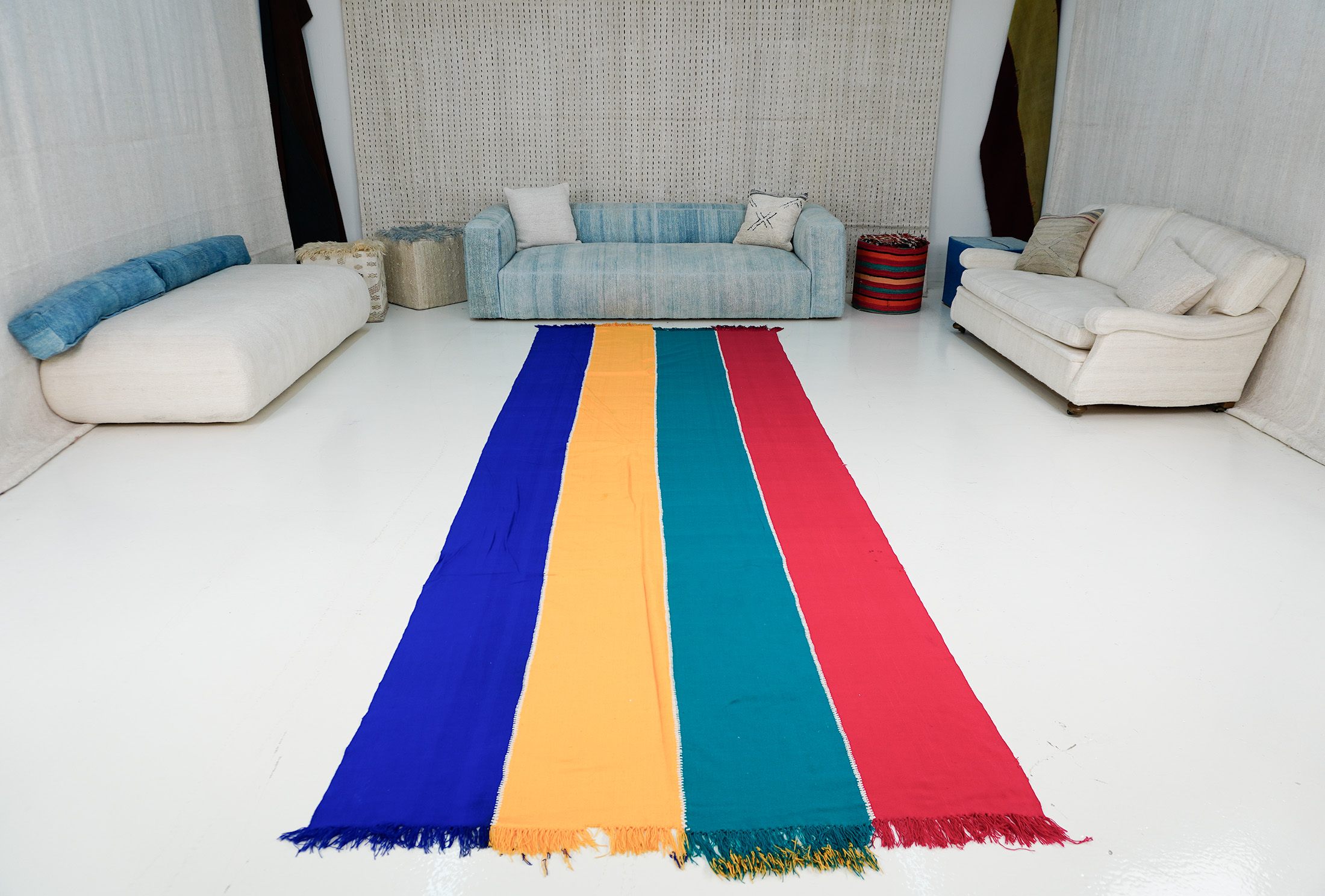 Elevate your design portfolio with the Vintage Kilim Perde Rug, a masterpiece of textile artistry. Spanning 147×427 cm – 4.82×14 ft, this multi color rug showcases a sophisticated palette, arranged in bold vertical stripes that command attention. Handwoven from the finest wool, its flatweave construction not only promises longevity but also offers a tactile experience that complements any interior. Ideal for creating a statement piece in a curated space, this rug embodies the fusion of traditional craftsmanship and contemporary design.