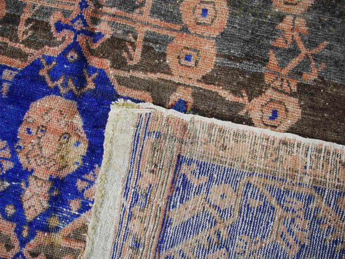Vintage Midnight Blue, Beige Color Turkish Kula Rug is a unique blend of beige and vibrant blue tones, adorned with traditional motifs and symmetrical patterns.